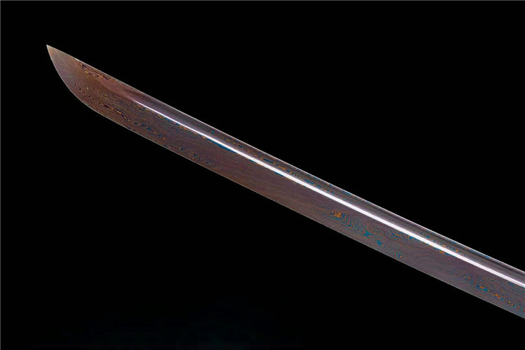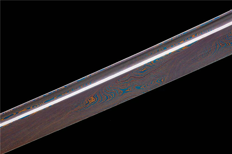 刃材:花纹钢扭转烤蓝,精细研磨