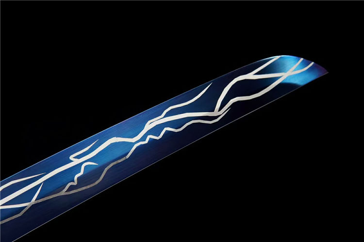 锰钢锻打弯曲90度不变形,刀身烤蓝工艺闪电处理,刀身刻花工艺处理