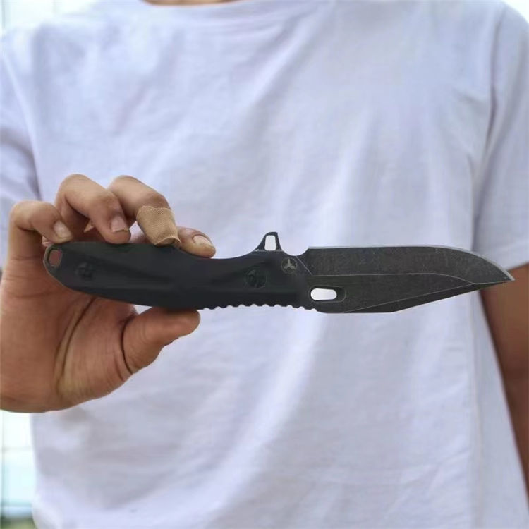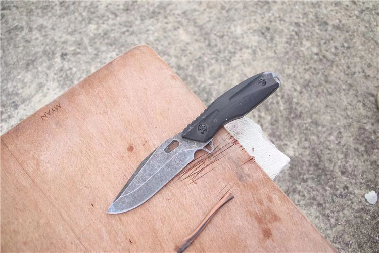 冷刃破军直刀 全长:240mm 刃长:110mm 柄长:115mm 刃厚: 4.5mm 刃宽: 35mm 净重: 275g(单刀) 毛重: 346g(含鞘) 钢材: DC53 硬度: 61-62HRC 柄材: G10 刀套: K鞘(含k鞘夹,可旋转横竖佩戴) 表面处理: 沧桑石洗 包装: 黑色手工盒