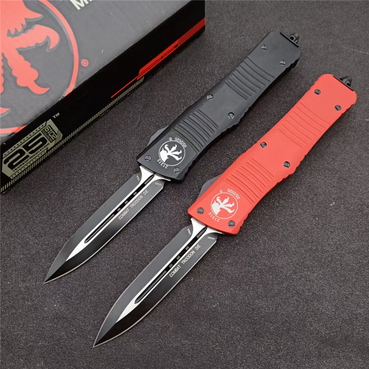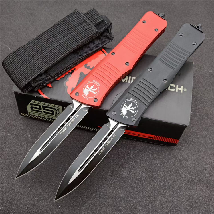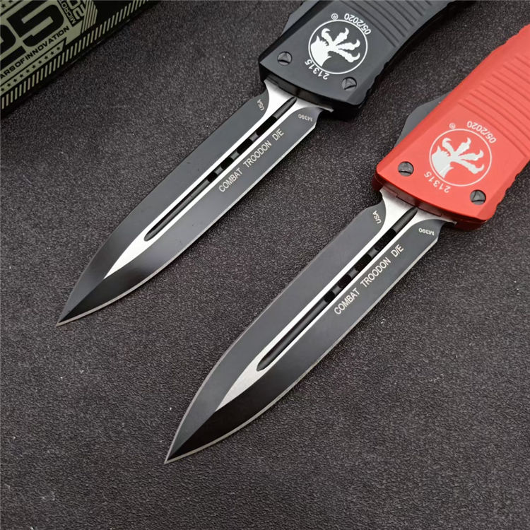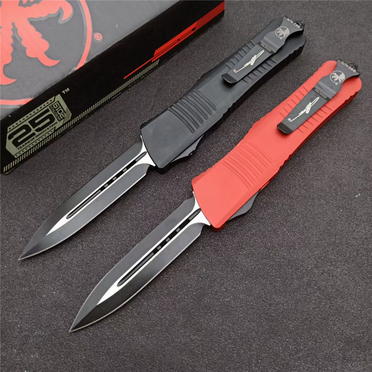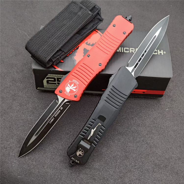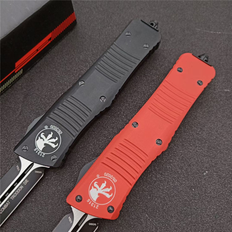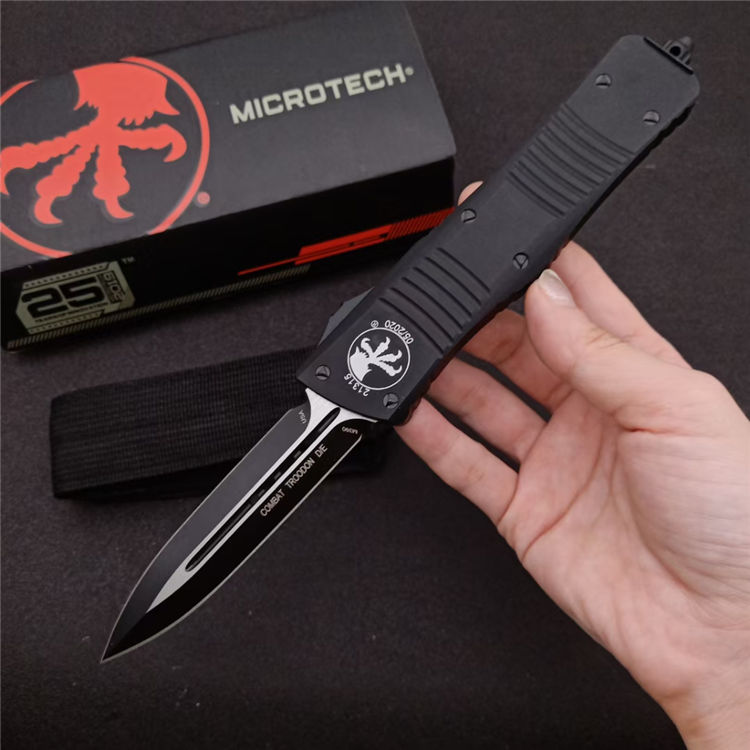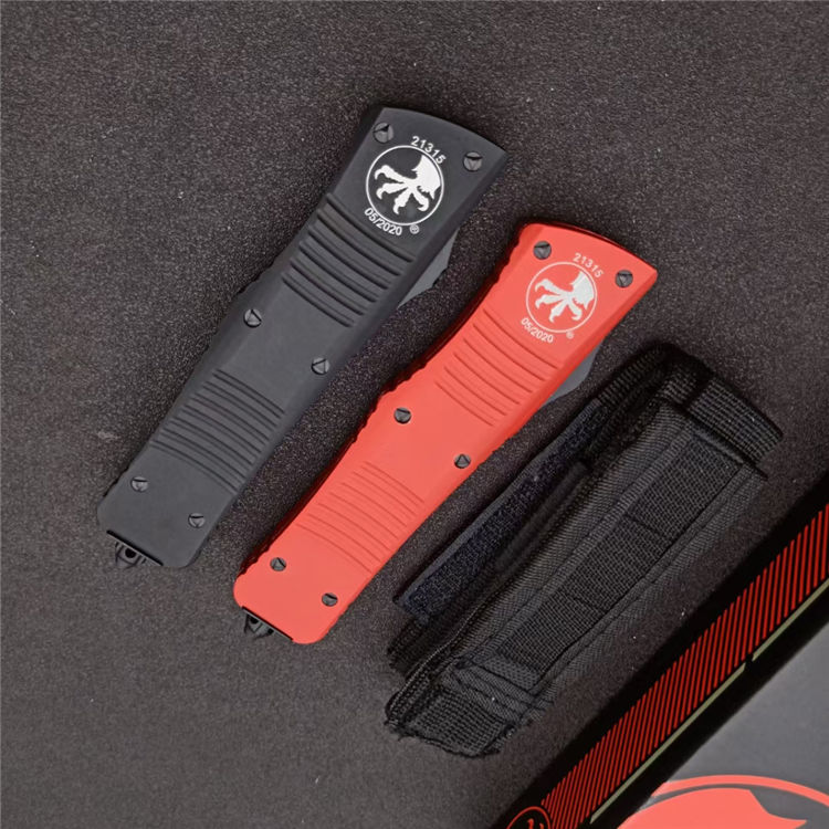 微技术爪标大龙直出跳刀 全长:24CM 刃长:9.6CM 刃厚:0.31CM 刃宽:2.1 CM 柄长: 14.4C 柄宽:2.8CM 柄厚:1.3CM 刃材: D2 柄材:航空铝 重量:160g 配拆卸工具
