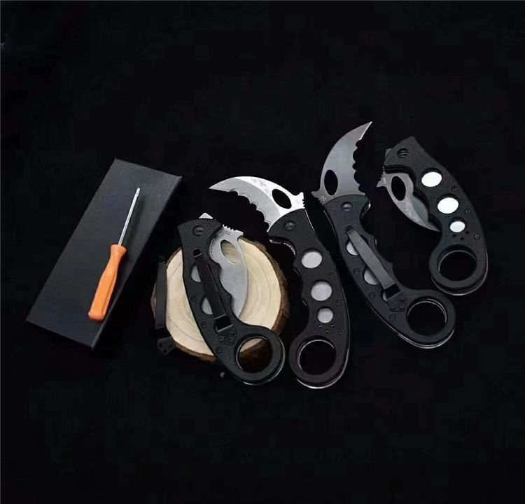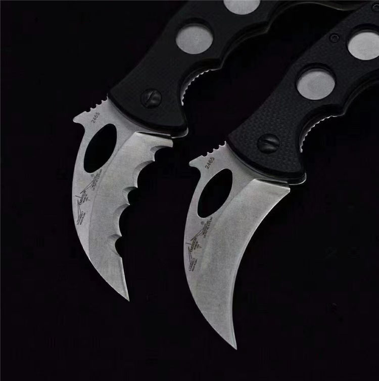 爱默生雄鹰折叠爪 全长:17.3CM 折叠:13CM(护手处) 刃长:6(弧度直线量) 硬度:58-60(真空热处理) 表面:真空镀钛 刃材:D2 重量:135g