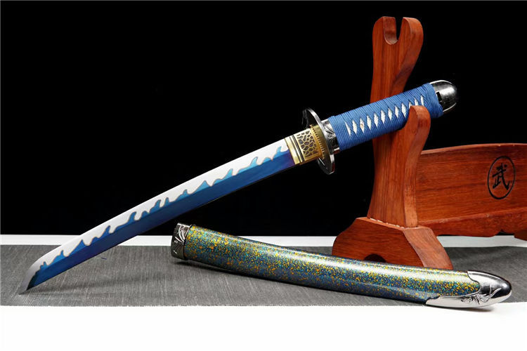 天赐武士刀 全长:55cm 刃长:33cm 柄长:17cm 刃宽:3.2cm 硬度:60 实木漆鞘搭配锌合金兰花套装赠送高端锦盒