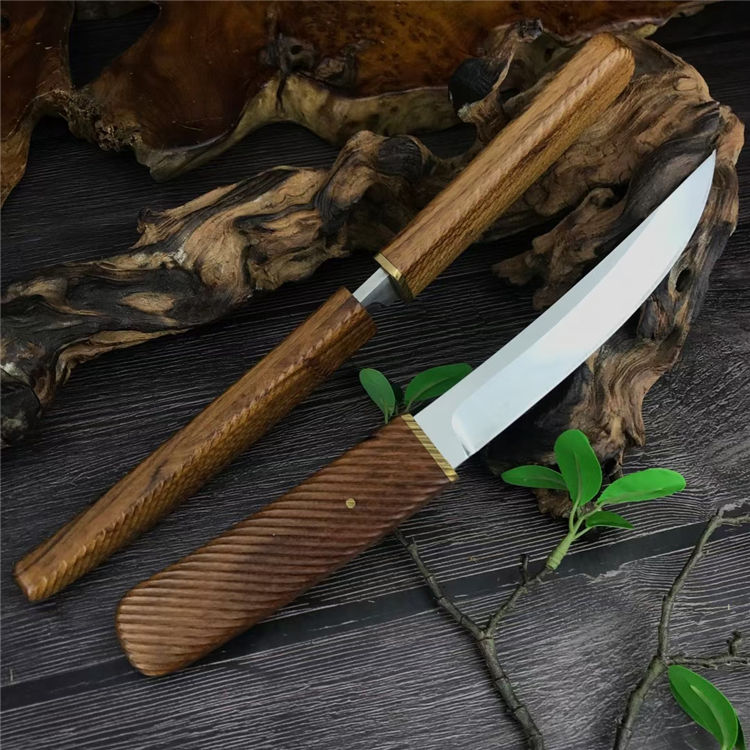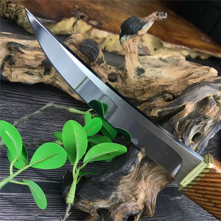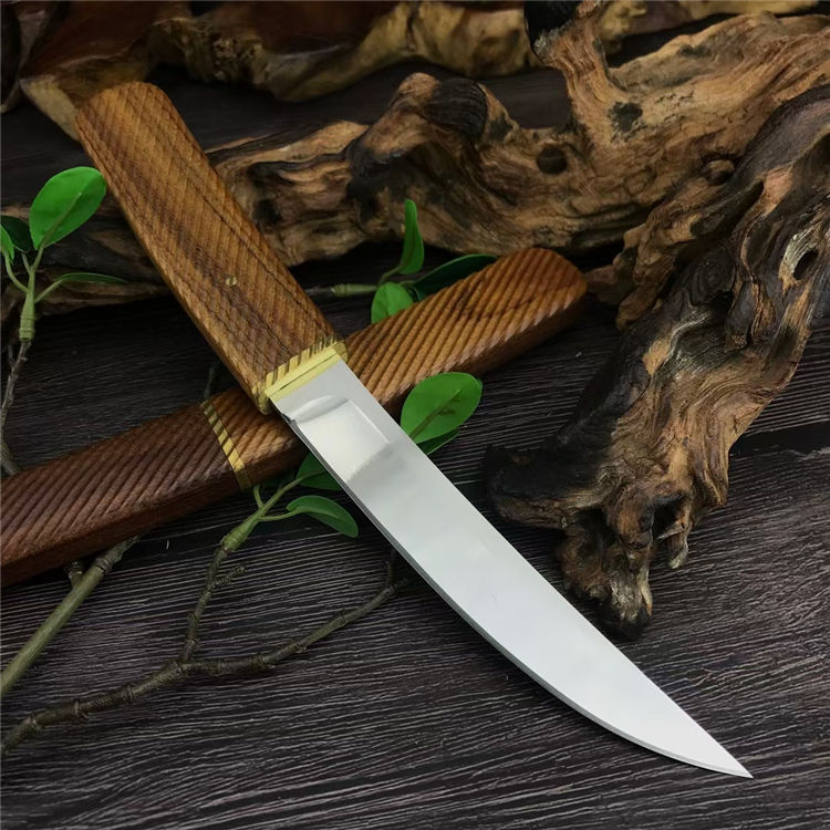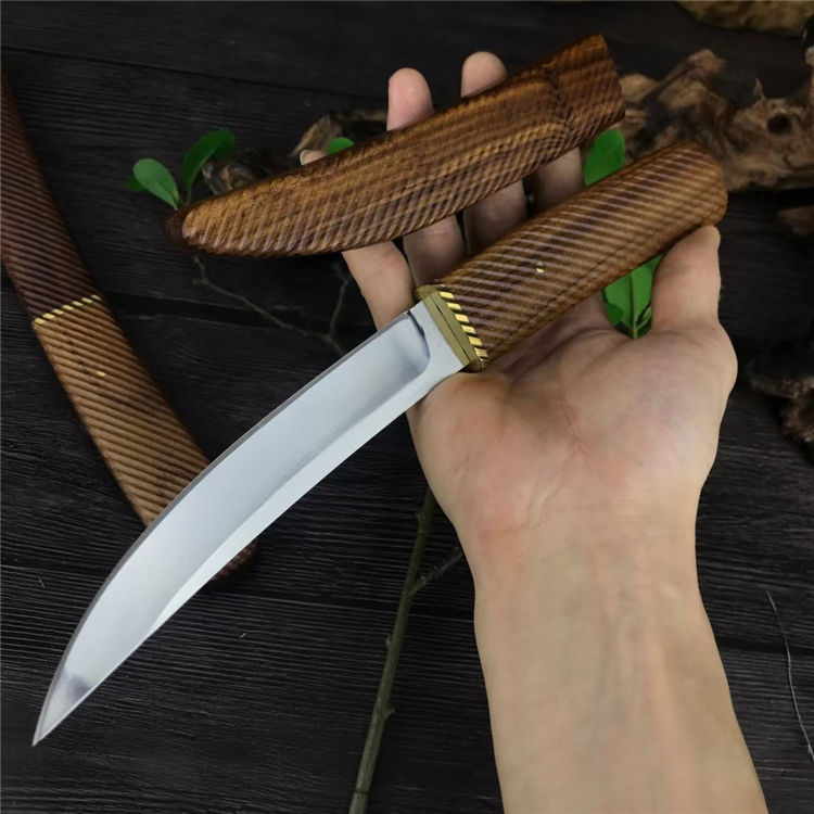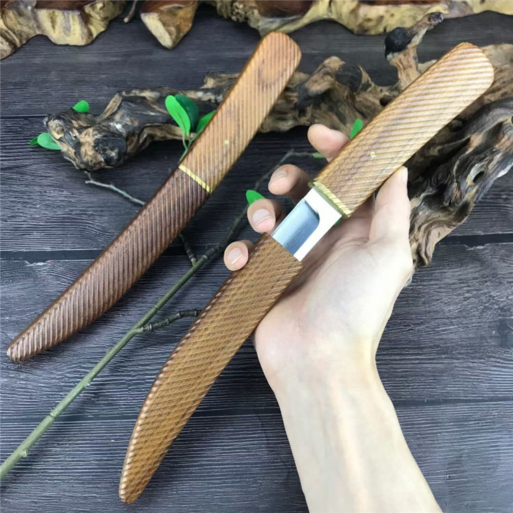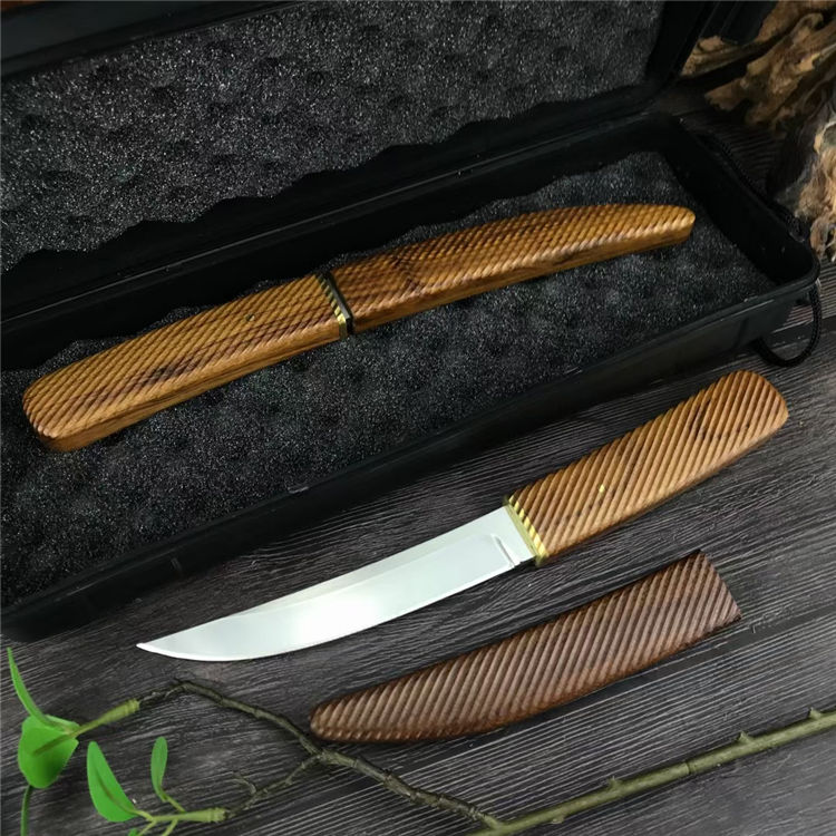龙牙武士刀 全长:26.5CM 刃长:14.3CM 刃宽:2.2CM 刃材:7CR13MOV 硬度:59 刃厚:5MM 柄长:12.2CM 重量:447G含包装盒 手柄与刀鞘:白影木