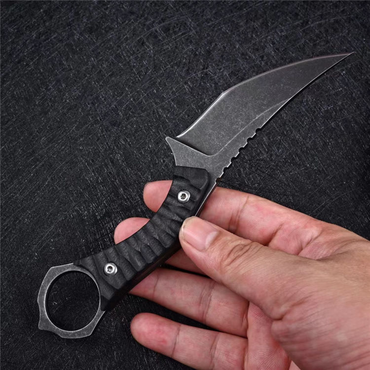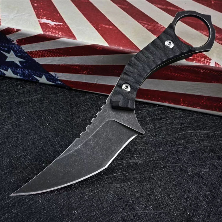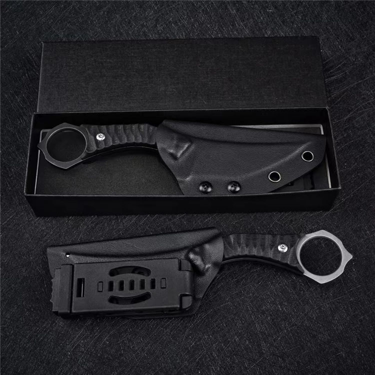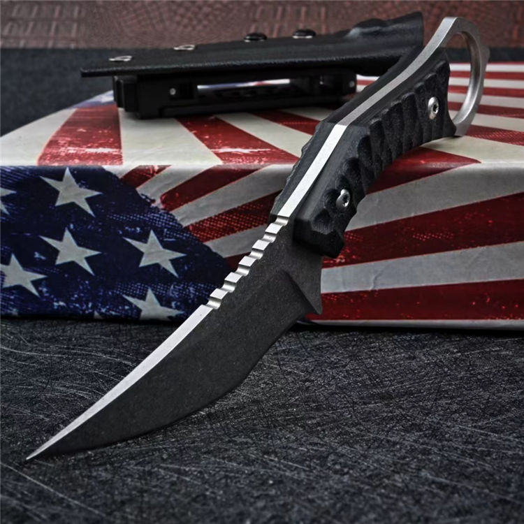 雷龙D2钢战术刀 总长:186mm 刃长:86mm 柄长:102mm 刃厚:3.8mm 刃宽:30mm 净重:103.8g 毛重:220g 钢材:D2钢 柄材:G10 硬度:59-60HRC 鞘材:kydex鞘 表面处理:石洗或沧桑石洗 包装:黑色盒子