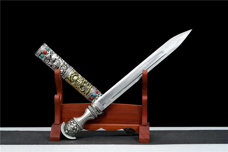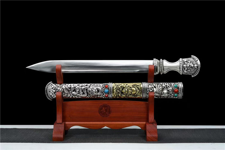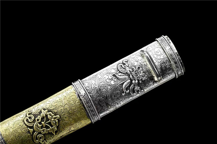全手工师傅手工雕刻镂空铜鞘镀金镀银,弹簧钢锻打刃材,手工打磨成型