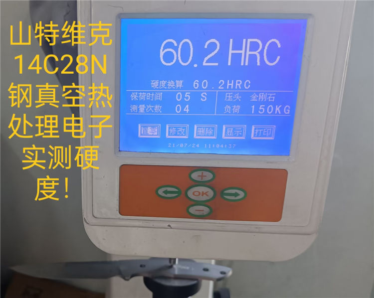 刃材:山特维克14C28N钢,它的优点就是具有更好的防锈性和韧性,硬度高保持性优越