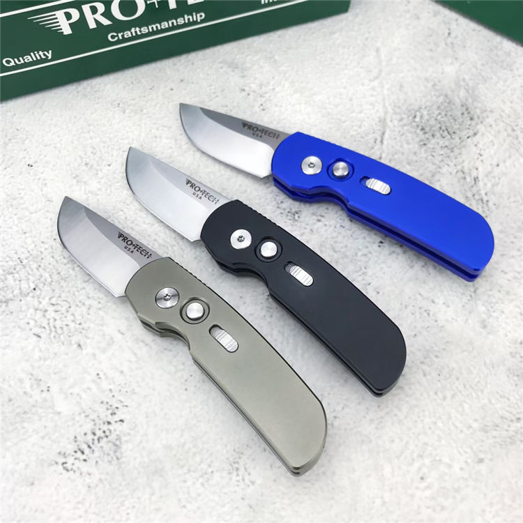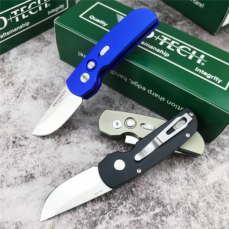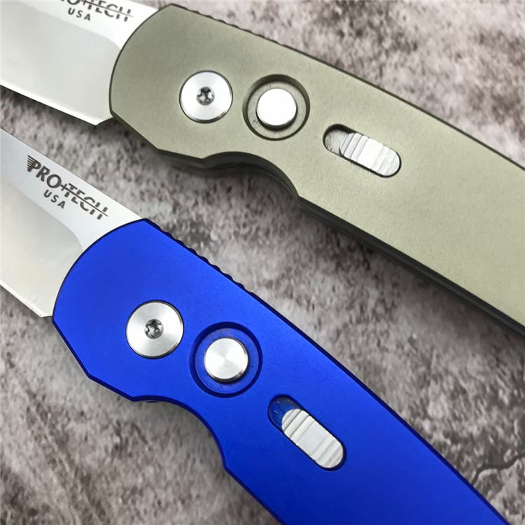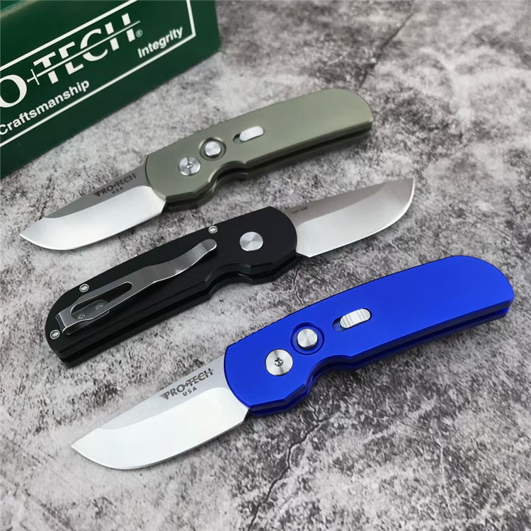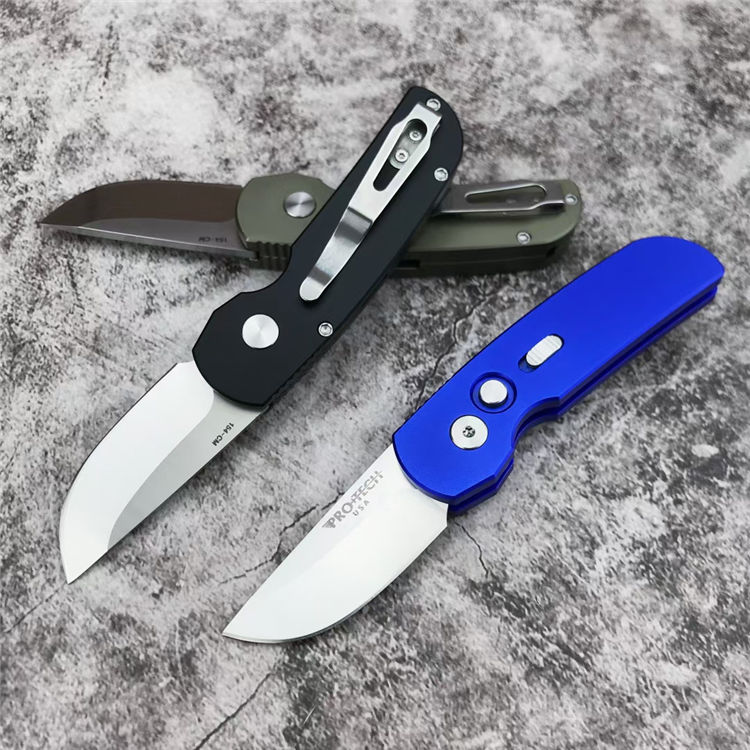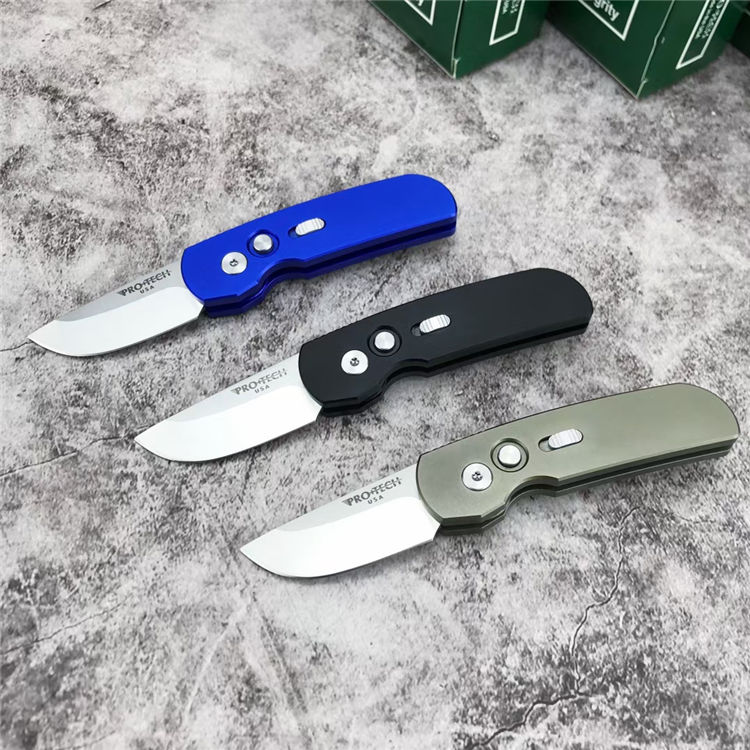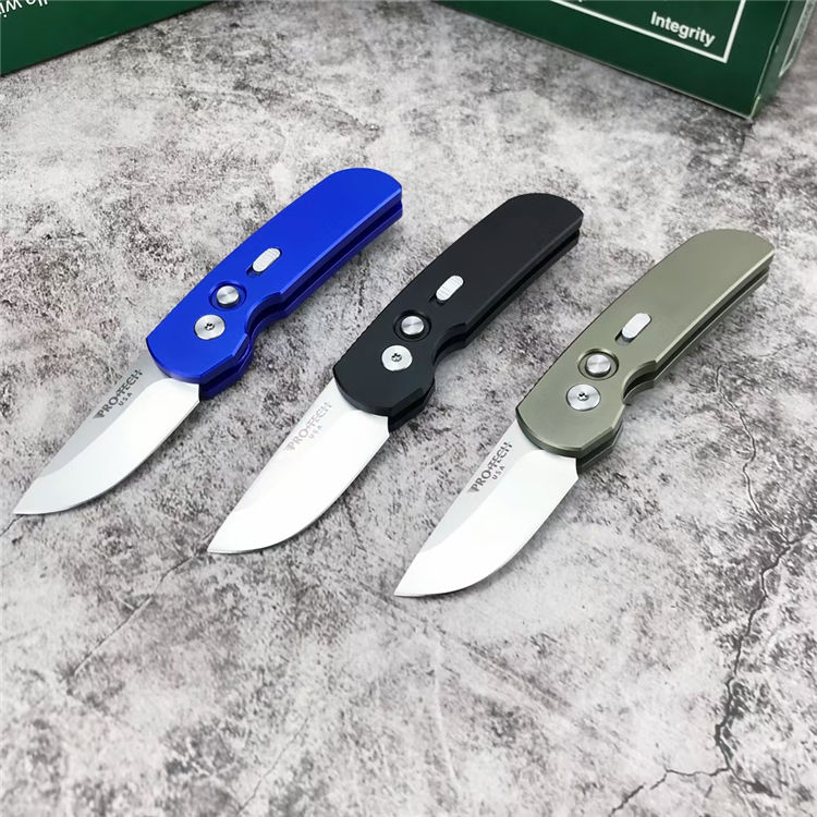 超技术2203迷你侧开跳刀 全长:13.8cm 刃长:5.2cm 刃厚:3.0mm 柄长:9cm 柄材:T6-6061(航空铝) 配件:彩色超技术包装盒