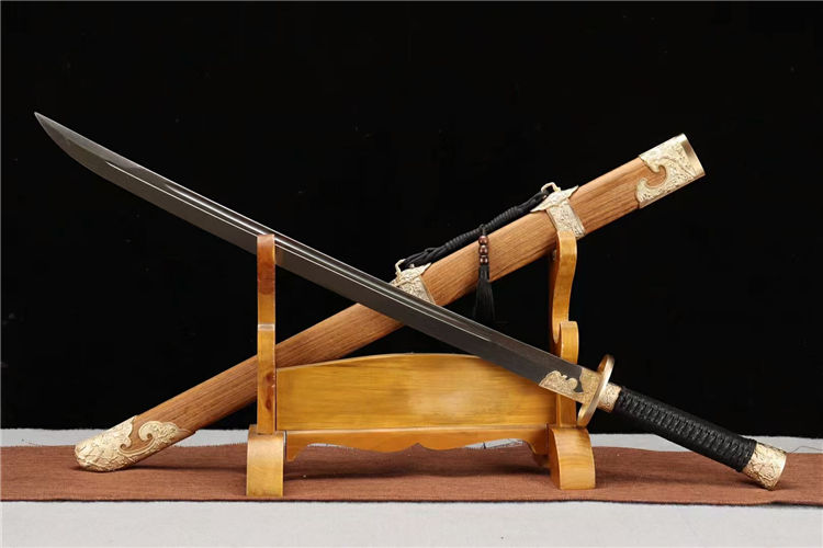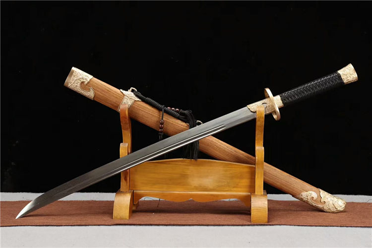 工艺:刃身手工锻造,经过打坯、热煅、铲、锉、研磨、粹火,回火、手工研磨等龙泉刀剑古法制造工序制作而成