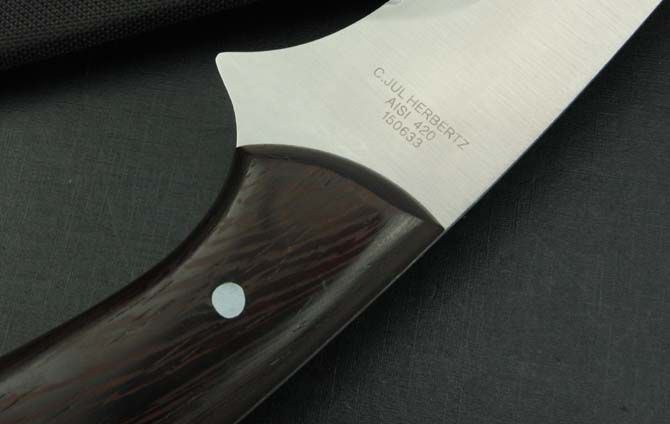 C.J.H-鸡翅木柄七眼野营刀 全 长:470mm 刃 长:330mm 柄 长:145mm 刃 宽:63mm 刃 厚:2.9mm 刃 材:5Cr13 重 量:580g(含包装) 硬 度:57HRC 表 面:砂光 柄 材:鸡翅木柄 锁 型:定锁 其 他:配硬尼龙套