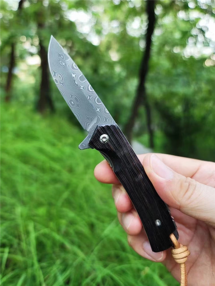 简师傅大马士革黑坦克折刀 全长:15.8CM 刃长:6.6CM 刃厚:1.9MM 硬度:59HRC 黑坦克延续了坦克系列的经典外形,刀刃升级110层回旋纹大马士革,花纹清新流畅,如石隙之间一缕清泉蜿蜒流淌,刀柄精选非洲老料黑檀木手工雕刻老树皮,再经多道打磨抛光,手感细腻温润。主轴镶嵌两片高精度滚珠轴承,一体快开设计。配头层牛皮手工缝制刀套,赠送简师傅亲笔防伪证书,复古礼盒包装。此款【黑坦克】造型经典,做工精细,是刀友日常使用、收藏把玩、馈赠好友之精品