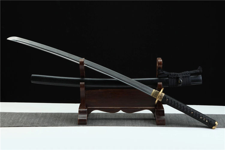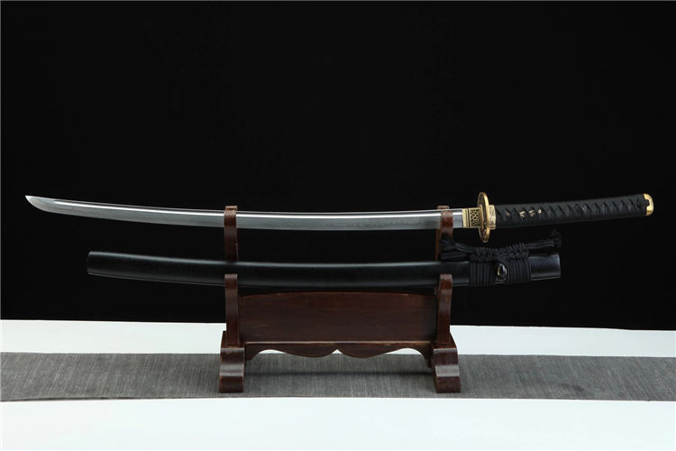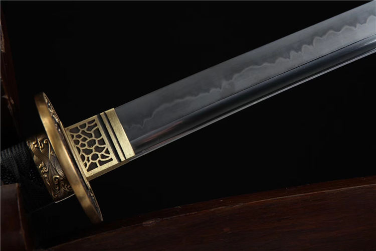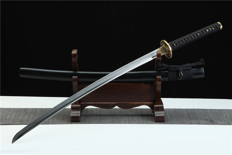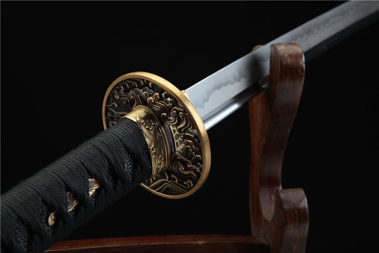 海浪武士刀 总长:103cm 刃长:71cm 柄长:27cm 刃宽:3.2cm 配置:锦盒/油/布(可拆卸) 刃材:1095钢 工艺:烧刃,研磨灰 刀柄:仿鱼皮 刀鞘:油漆鞘 装具:铜装做旧