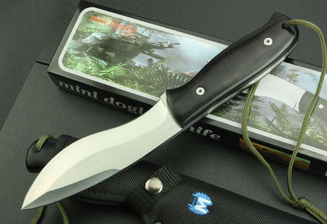 M唛狗腿(黑色、白色) 全 长:278mm 刃 长:146mm 柄 长:130mm 刃 宽:45mm 刃 厚:5.6mm 刃 材:5Cr13Mov(锻打) 重 量:460g(含包装) 硬 度:57HRC 表 面:砂光 柄 材:彩木 锁 型:定锁 其 他:配尼龙套和彩盒