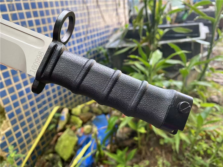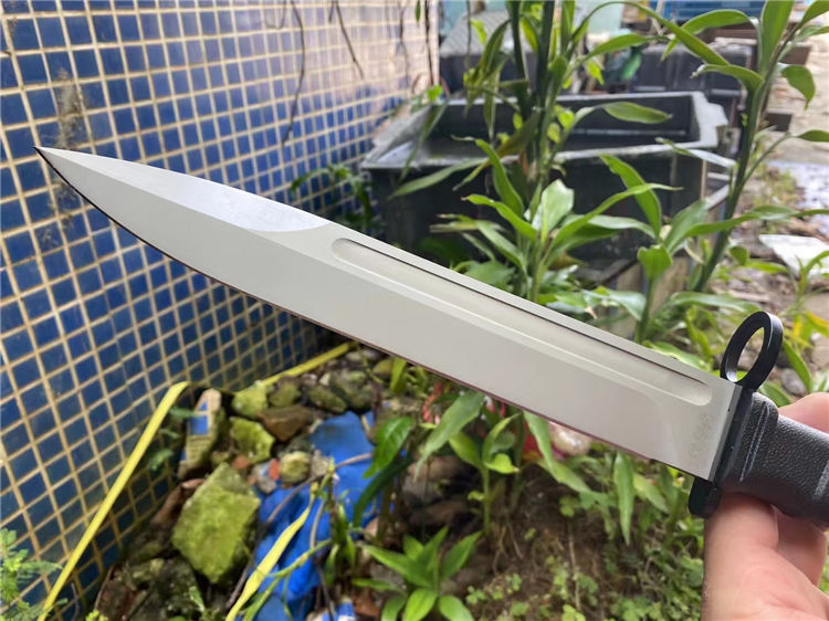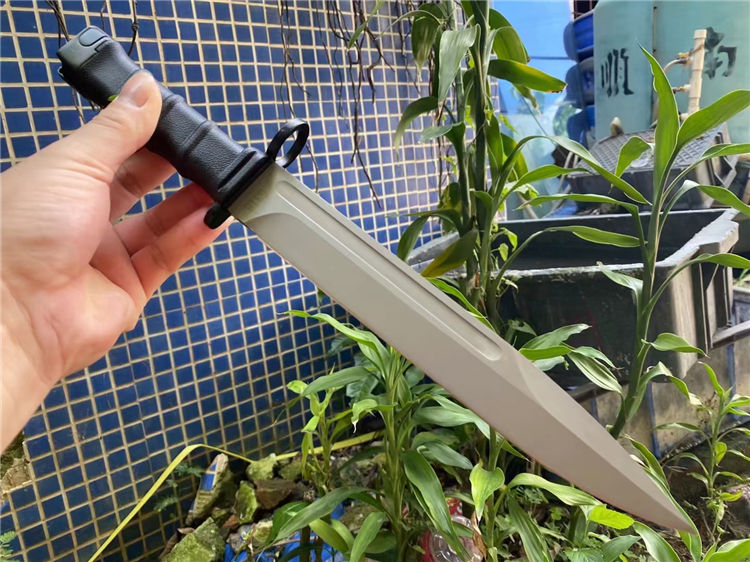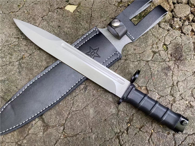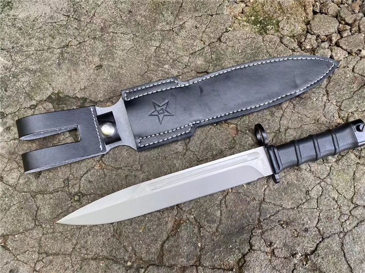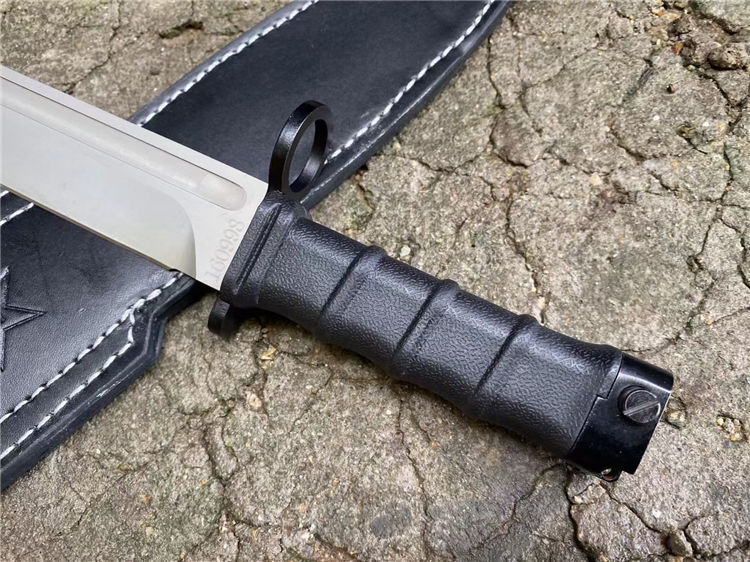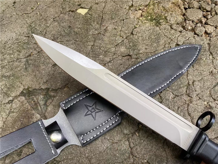 复刻版06军刺 类型:军刀 材质:1095高碳钢 硬度: 58HRC 全长:36.5cm 刃长. 25cm 柄长: 11.2cm 厚度:0.5cm 宽度:3.5cm 表面:灰钛 配:皮革套 产地:中国