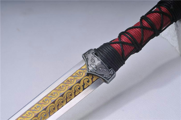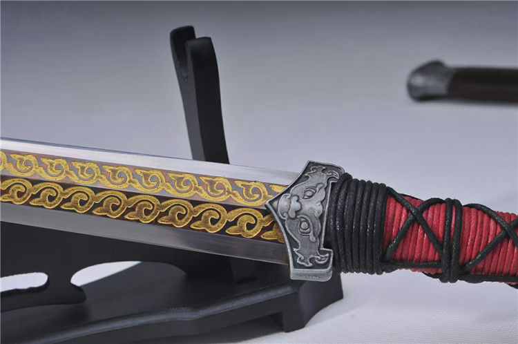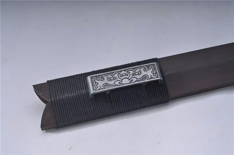 花纹钢手磨鎏铜雕刻花纹剑条,酸枝木鞘,青古合金装,手工缠绳