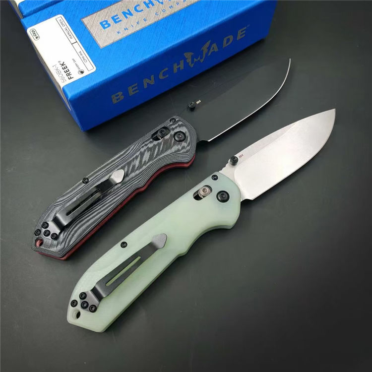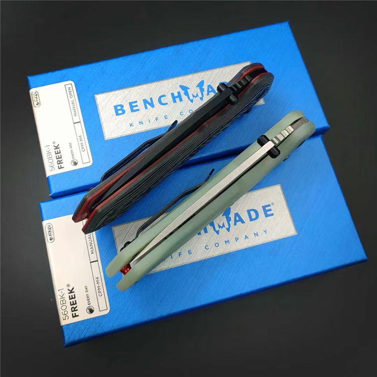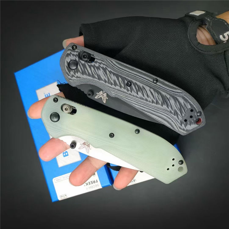 蝴蝶BM560折刀 货号:BM560 结构:轴锁 全长:213mm 刃材:CPM-M4 表面:钢本石洗/黑色镀钛 硬度:60HRC 刃厚:3.0mm 刃长:90mm 柄长:123mm 柄材及处理:肉色G10/黑灰色双色(红底)两种手柄,CNC加工成型 重量:122g(净重)彩盒包装,发黑背夹