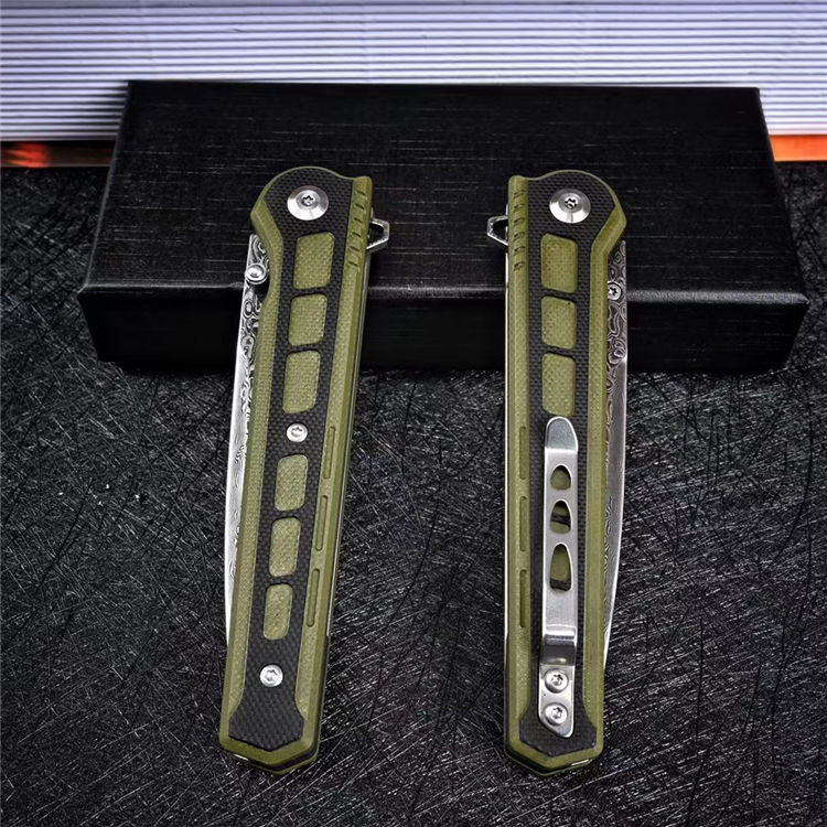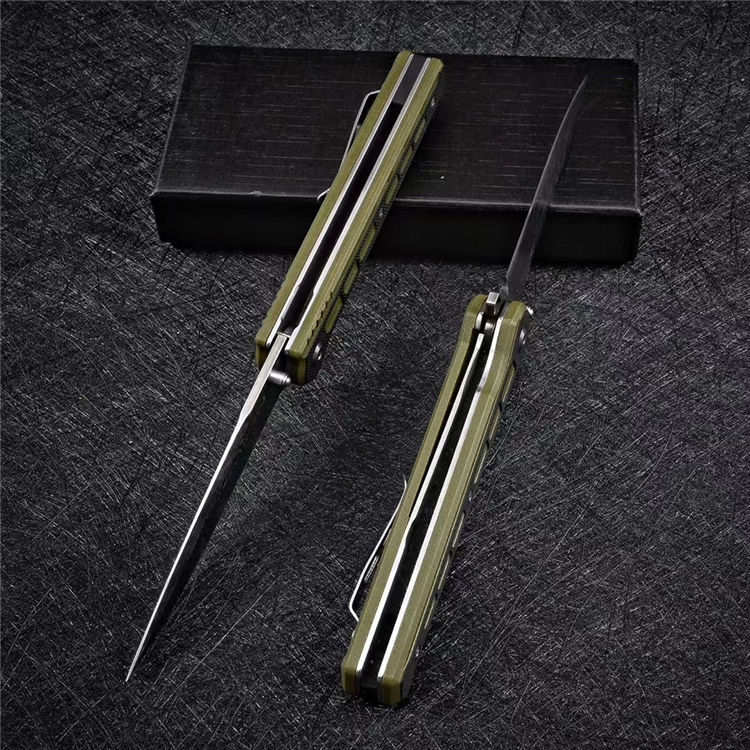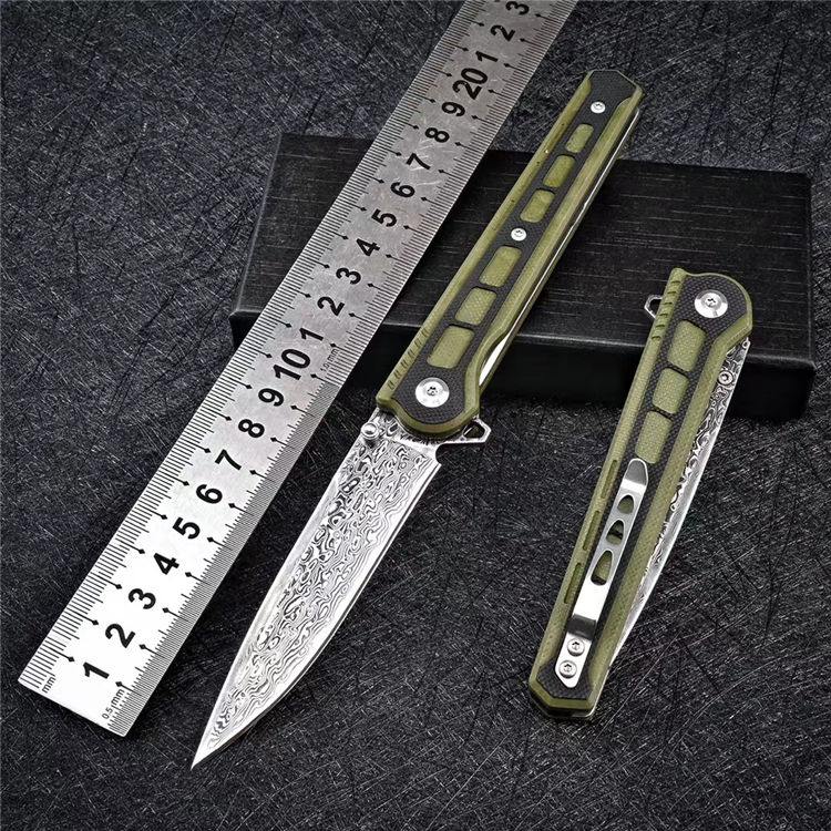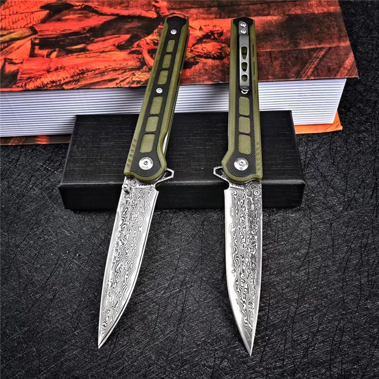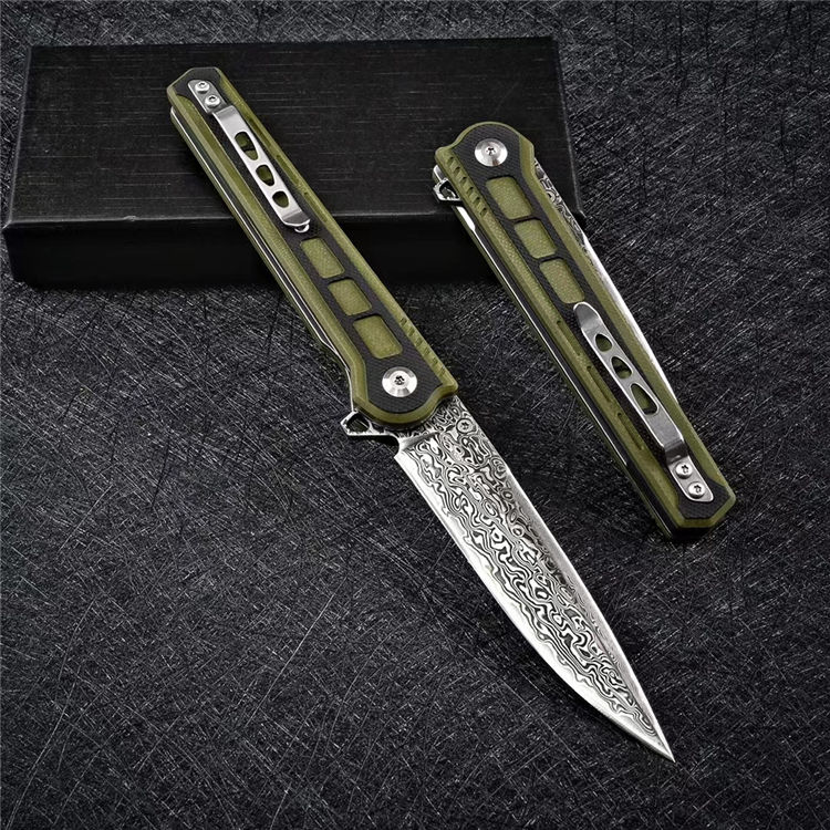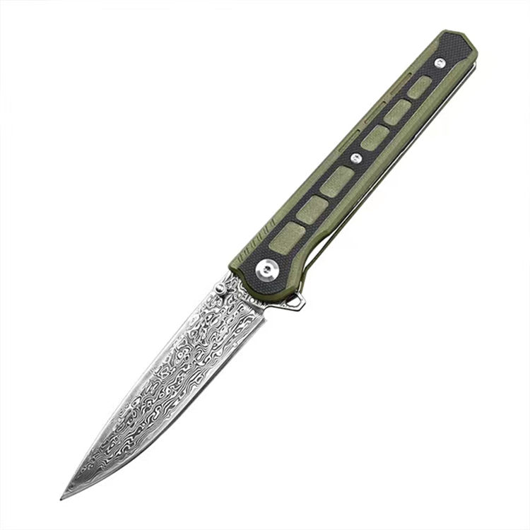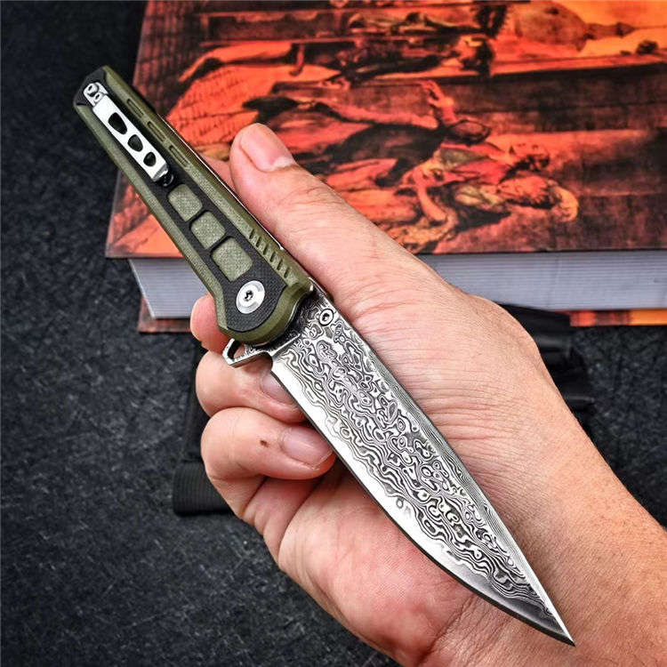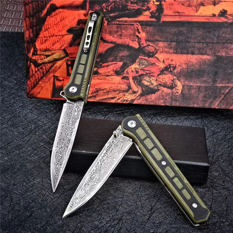 大马士革浩克折刀 全长:21.1cm 刃长:9cm 柄长:11.7cm 刃厚:0.28cm 刃宽:2.1cm 刃材:VG10大马士革钢 柄材:双色G10 硬度:60-61HRC 表面处理:大马士革钢原纹 净重:107.1g 重量:153g(含包装) 包装:黑色礼品盒