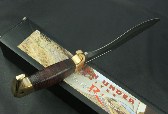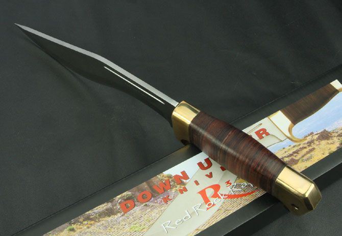唐安德-岩石猛禽库克利弯刀 全 长:390mm 刃 长:230mm 柄 长:140mm 刃 宽:48mm 刃 厚:5.0mm 刃 材:9Cr18Mov 重 量:890g(含包装) 硬 度:58-60HRC 表 面:砂光 柄 材:双铜头+皮柄 锁 型:定锁 其 他:配牛皮套和原厂彩盒