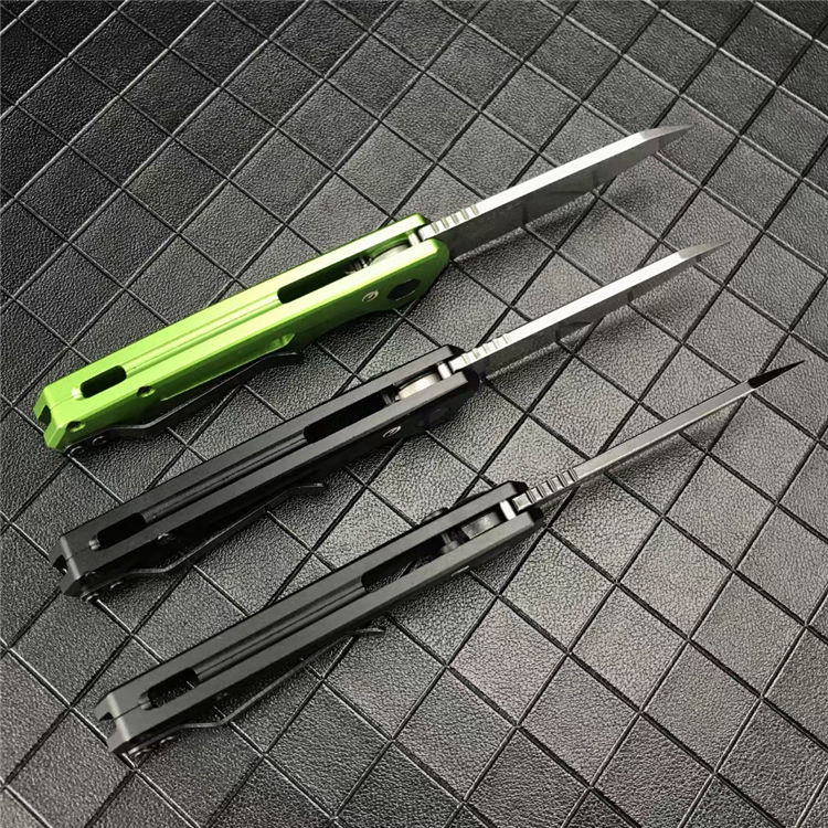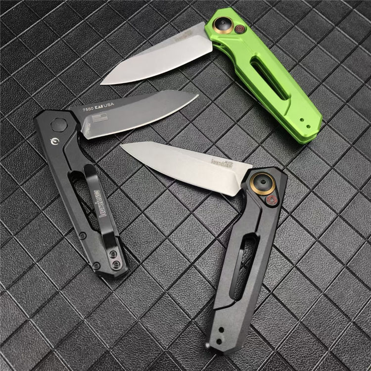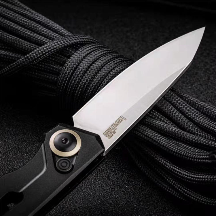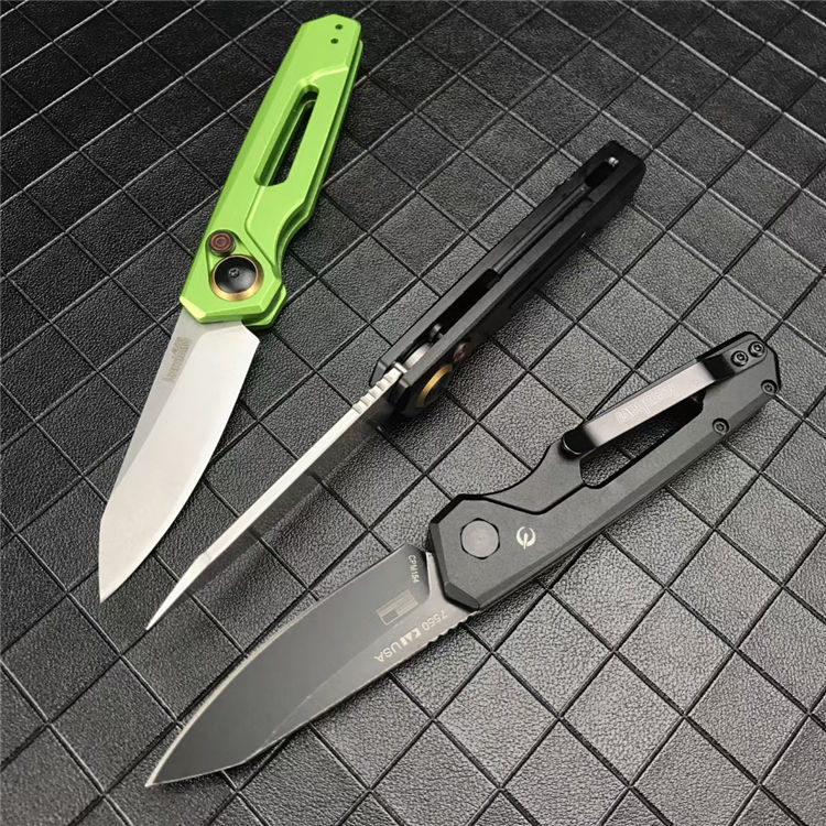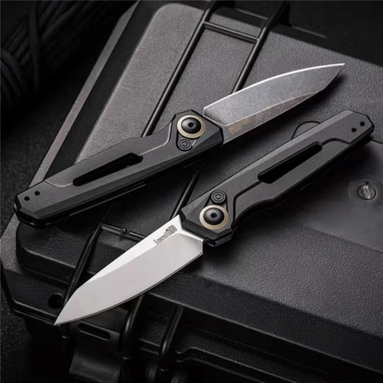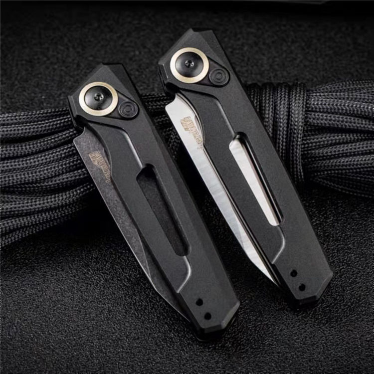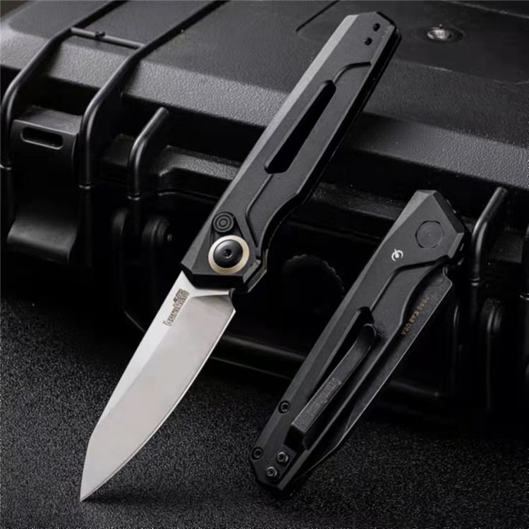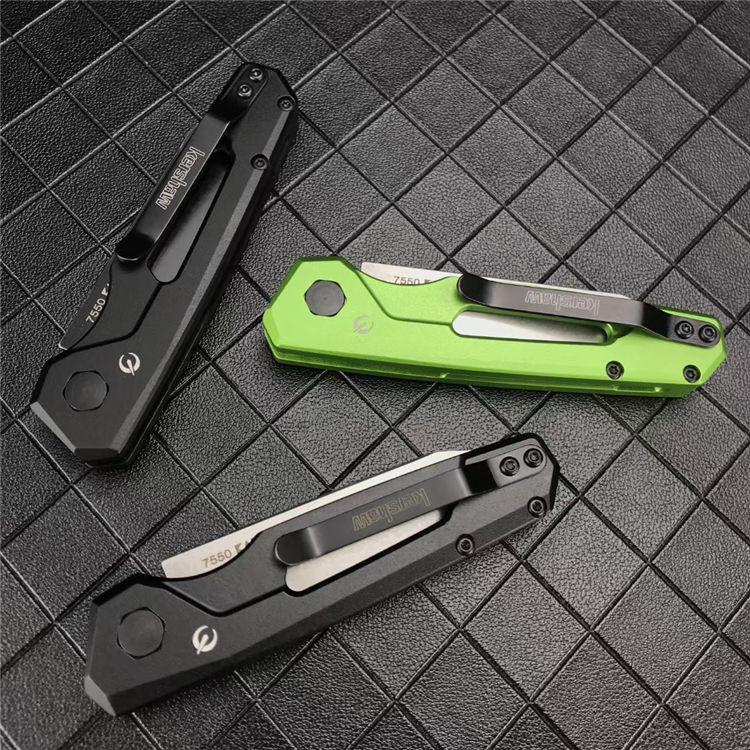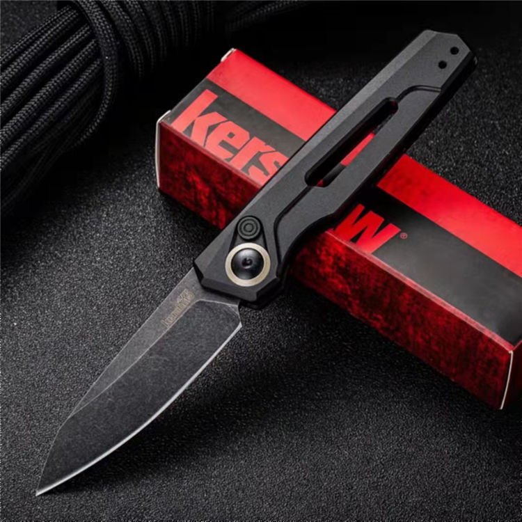 卡秀7550侧开跳刀 展开:16.6cm 刃长:7cm 闭合:9.9cm 钢材:CPM154 硬度:60~61HRC 刃厚:3.1mm 表面处理:黑色石洗涂层处理 柄材:航空铝合金手柄 重量:60克 包装规格:纸盒 锁定方式:PUSH BUTTON自动按钮侧跳