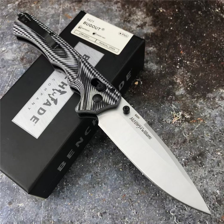 蝴蝶1401折刀 全长:215mm 刃长:90mm 刃材:S30V 硬度:59HRC 柄材:双色G10,双410不锈钢钢衬 刃厚:3.0mm 净重:127g 刀夹:410不锈钢刀刃 表面:砂光或黑钛刀 重量:120G 总重量:179G(含包装盒)