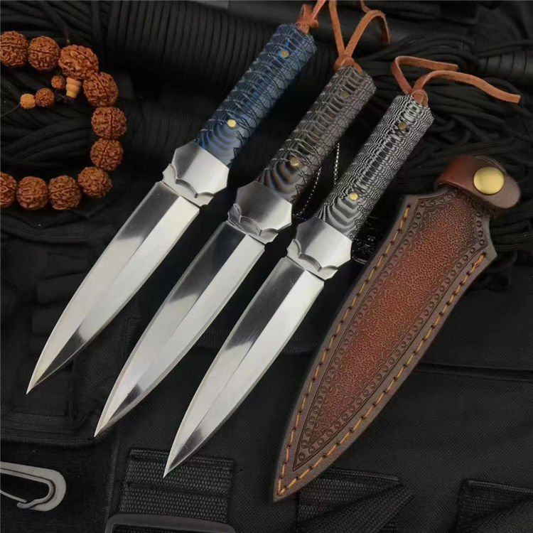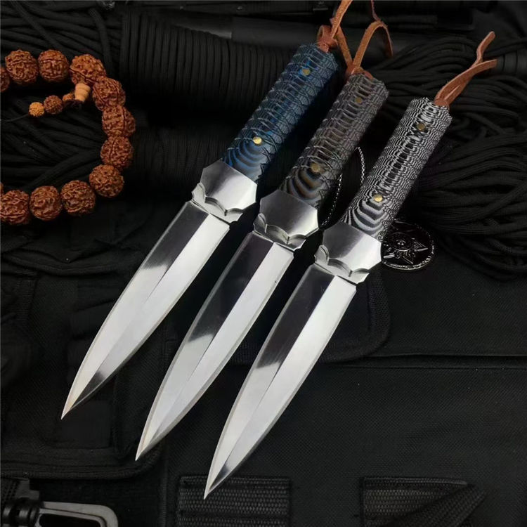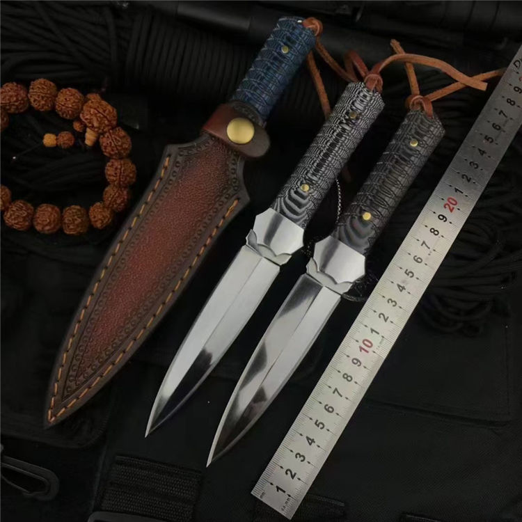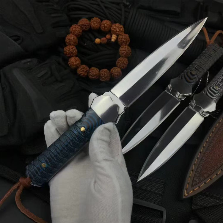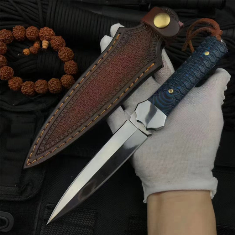 镜光版虎牙直刀 特点:一体双刃 全长:24.5cm 刃长:12.5cm 刃宽:2.7cm(最宽处) 柄长:12cm 刃材:7Cr18Mov 硬度:60-61HRC 热处理:真空高温热处理 柄材:G10高硬度纤维,经电脑锣精加工防滑格纹 重量:210克(含套) 刀套:阿根廷进口植鞣皮手工制作刀套高端珍藏品,居家办公摆设镇宅神兵,由国内知名大师鑫生原创出品,极致手工制造,做工细节完美无瑕可挑,真空热处理,高硬度并且锋利无比