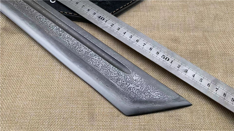刀把龙骨一体刀身为百炼折花手工锻打此刀钢火好,手感好,又大气