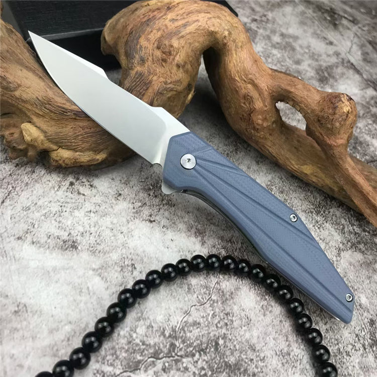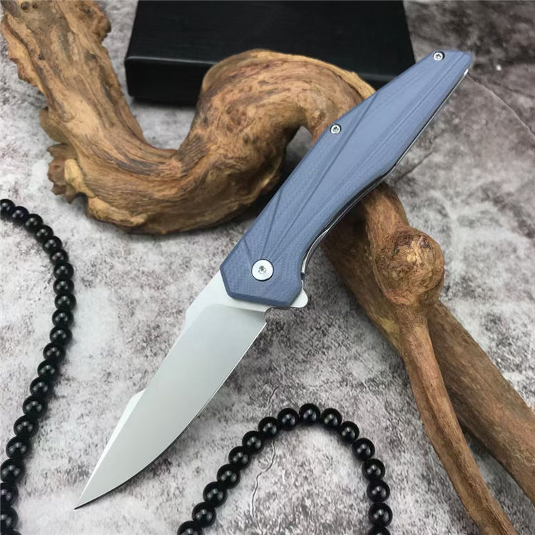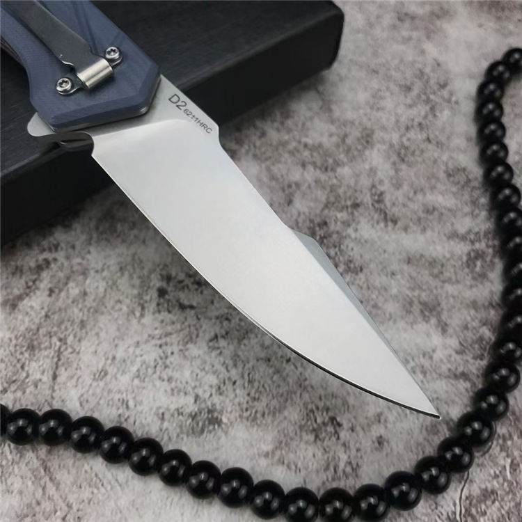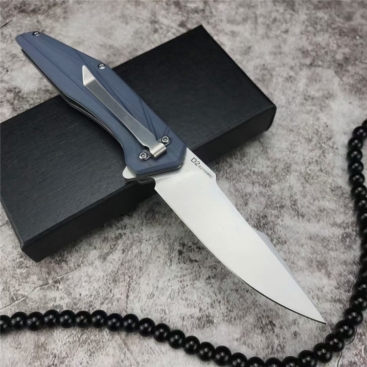 蓝枫D2折刀 全长:20CM 刃长:8.6CM 刃宽:2.5CM 刃厚:2.5MM 刃材:D2 柄长:11.4CM 手柄:蓝色G10 重量:112G 总重量:157G(含盒子)