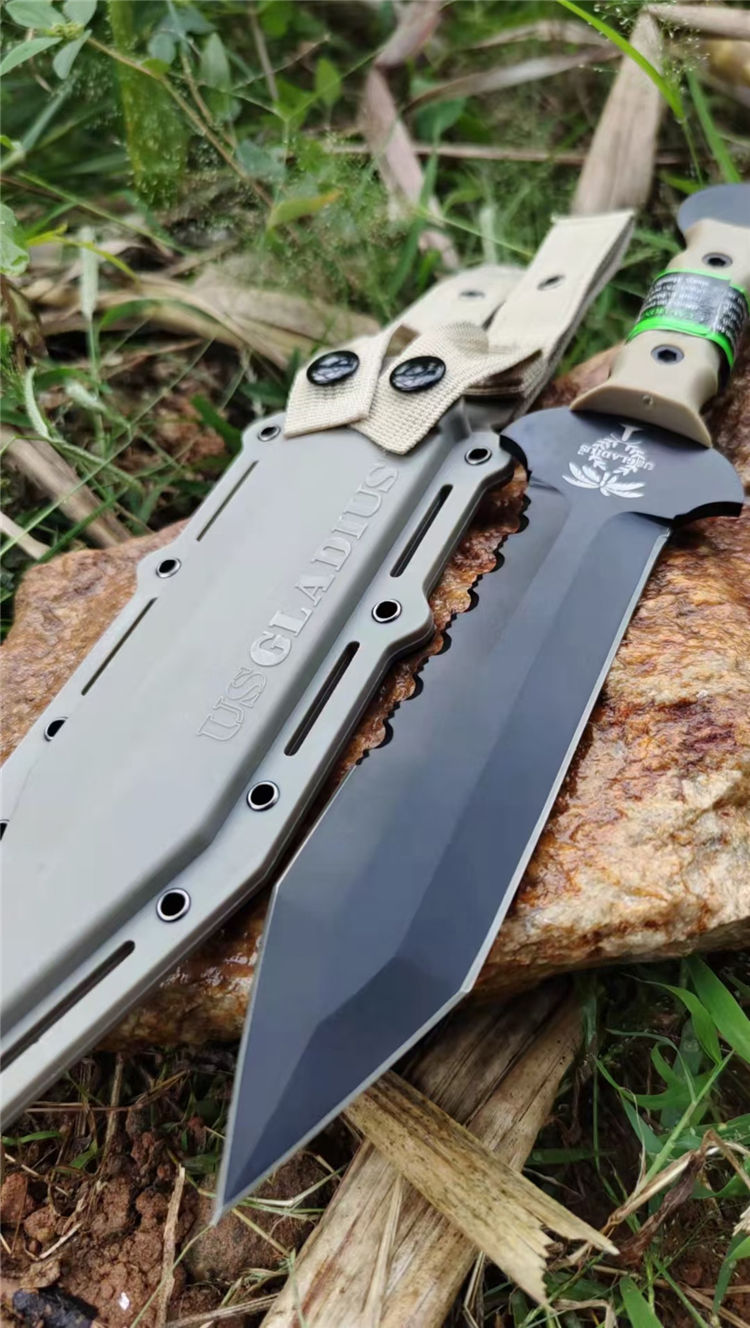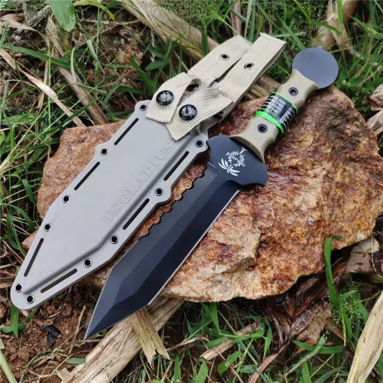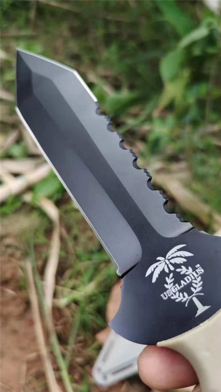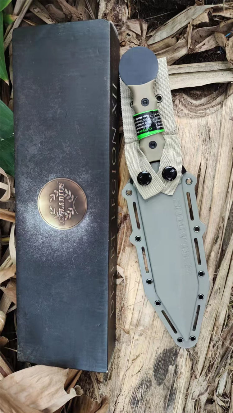 罗马帝国G2直刀 总长:27.5CM 刃长:14.5CM 柄长:10.5CM 钢材:9CR17MOV 硬度:60~62HRC 表面:黑钛,带锯齿 柄材:ABS 刃厚:5MM 刃宽:3CM 重量:407克(含鞘) 刀套:K鞘(灰色) 包装:原包装盒
