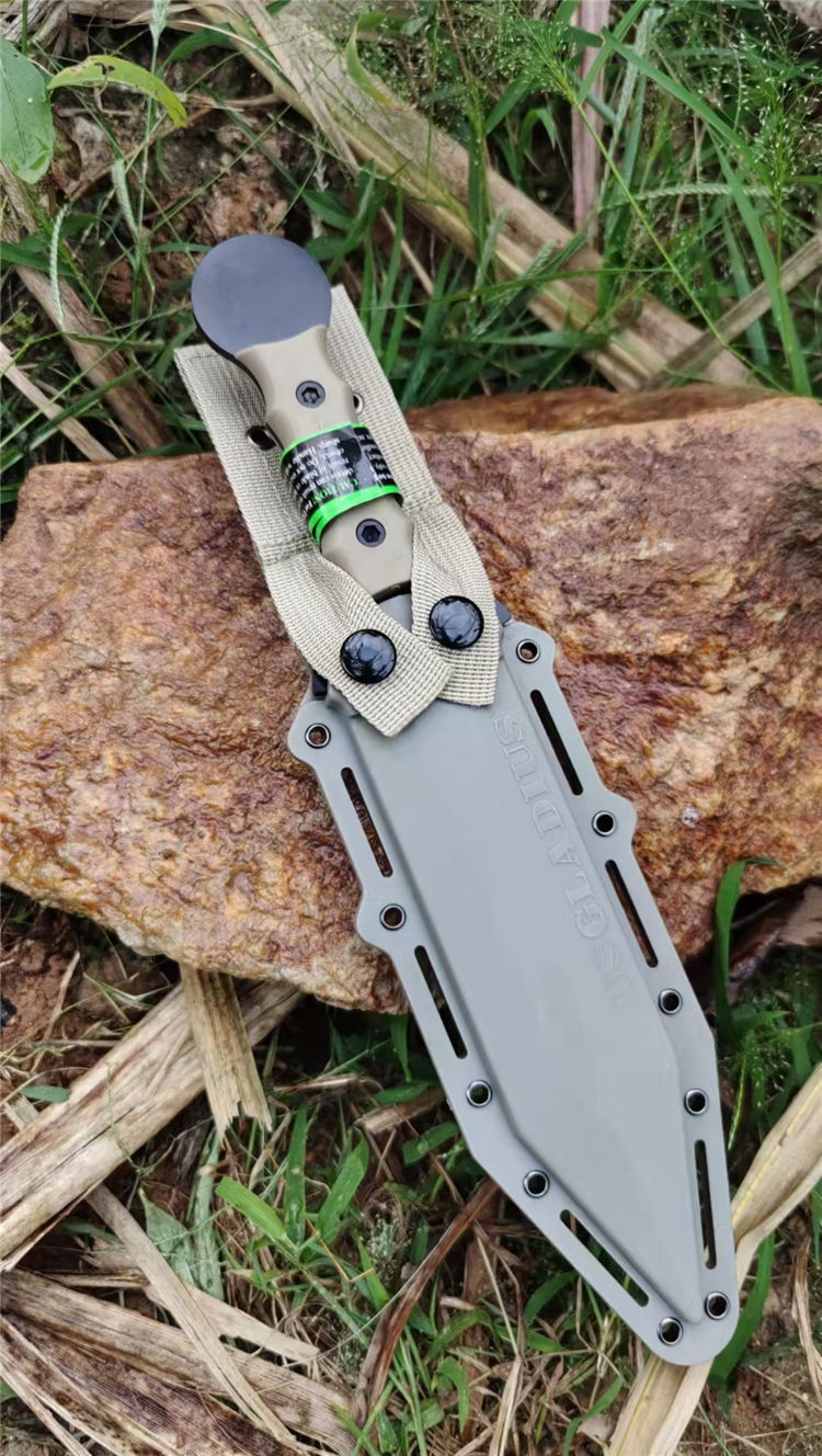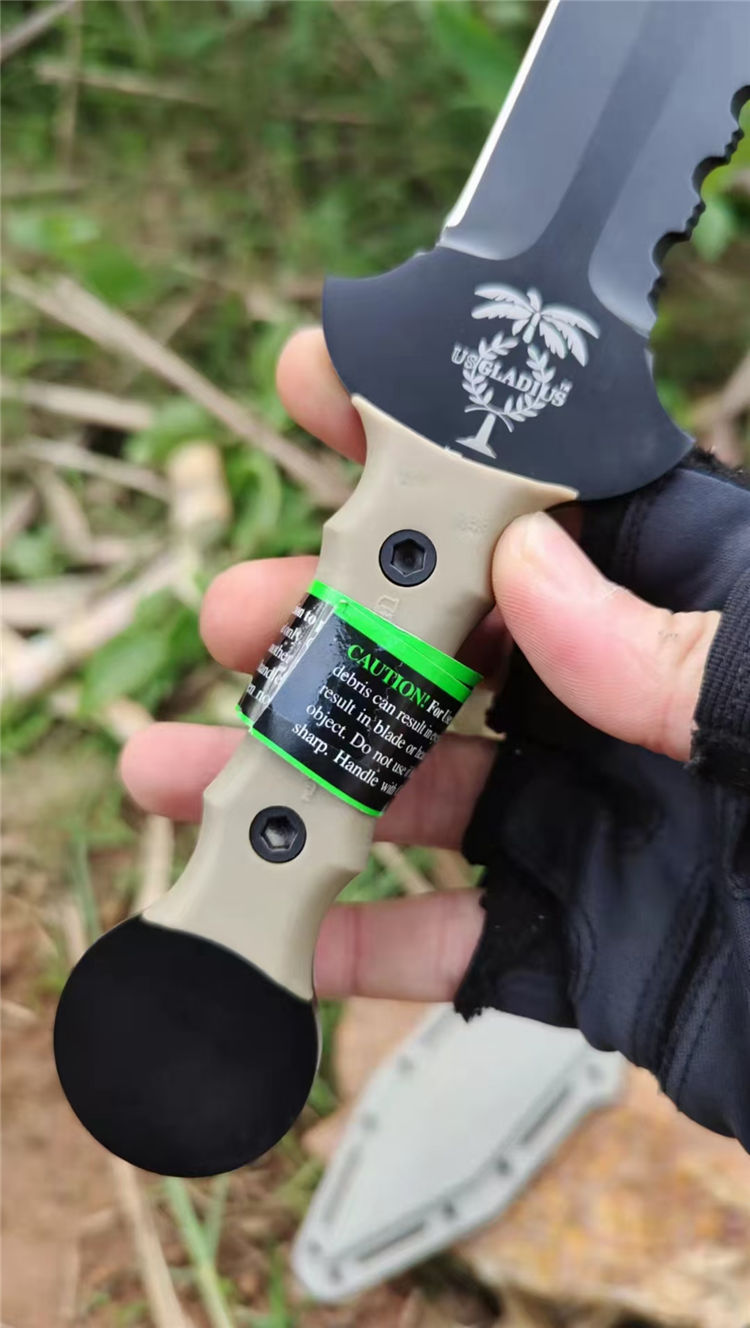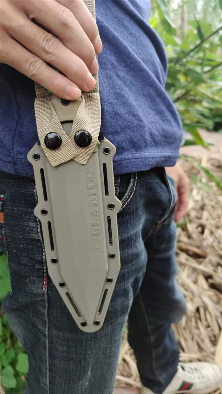 罗马帝国G2直刀 总长:27.5CM 刃长:14.5CM 柄长:10.5CM 钢材:9CR17MOV 硬度:60~62HRC 表面:黑钛,带锯齿 柄材:ABS 刃厚:5MM 刃宽:3CM 重量:407克(含鞘) 刀套:K鞘(灰色) 包装:原包装盒