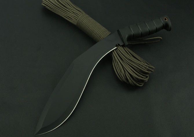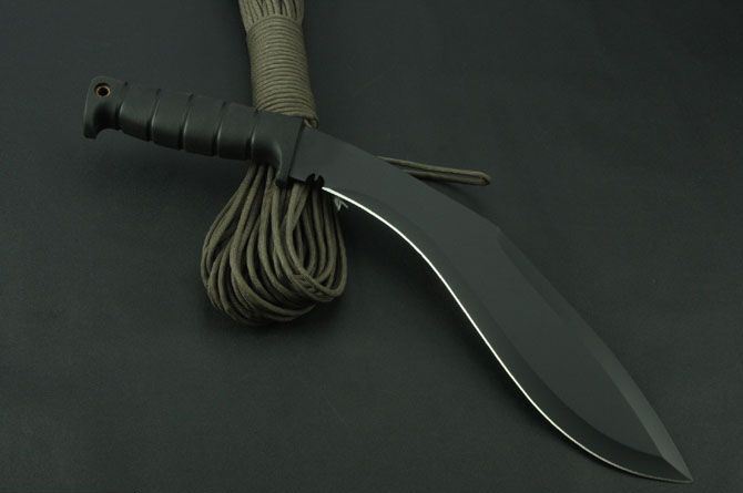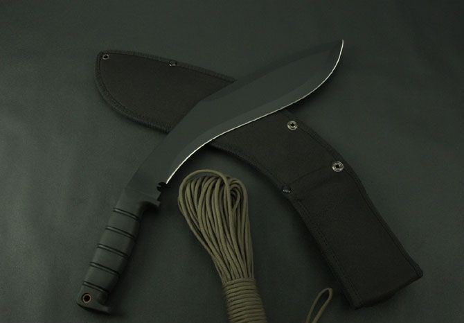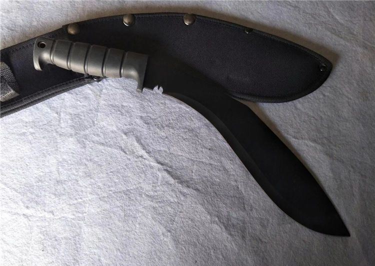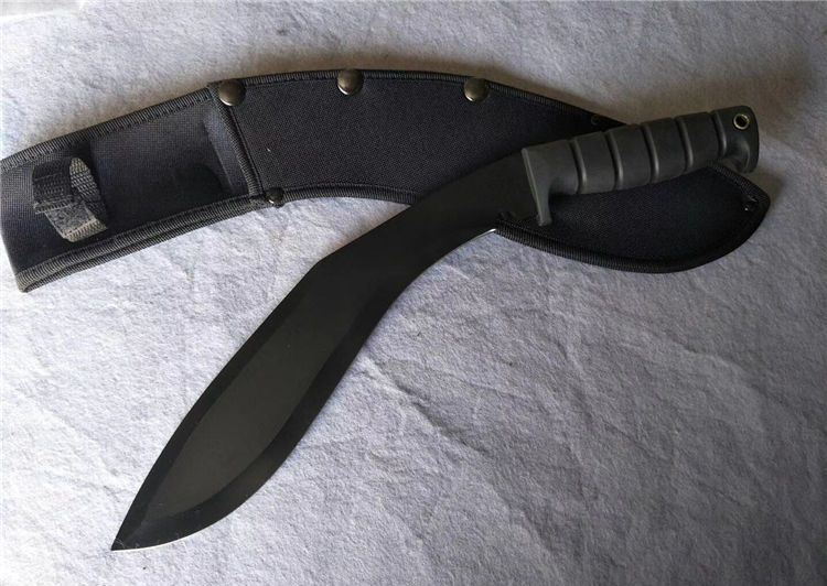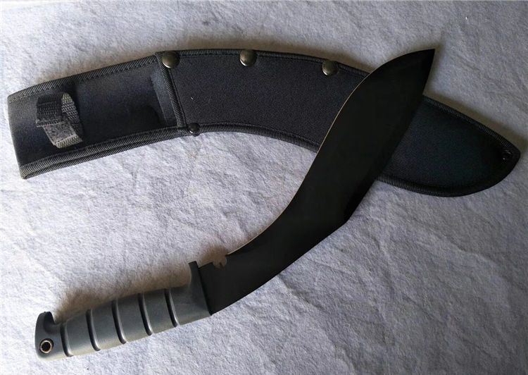 卡巴081C狗腿刀黑色 全 长:420mm 刃 长:270mm 柄 长:128mm 刃 宽:58mm 刃 厚:3.1mm 刃 材:5Cr13Wov 重 量:610g(含刀套) 硬 度:56HRC 表 面:氧化黑 柄 材:ABS(塑胶) 锁 型:定锁 其 他:配尼龙套