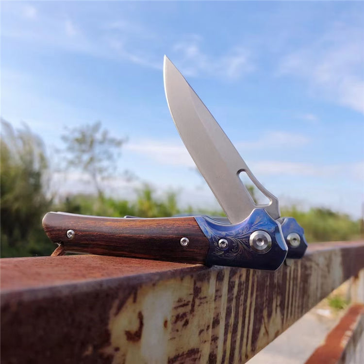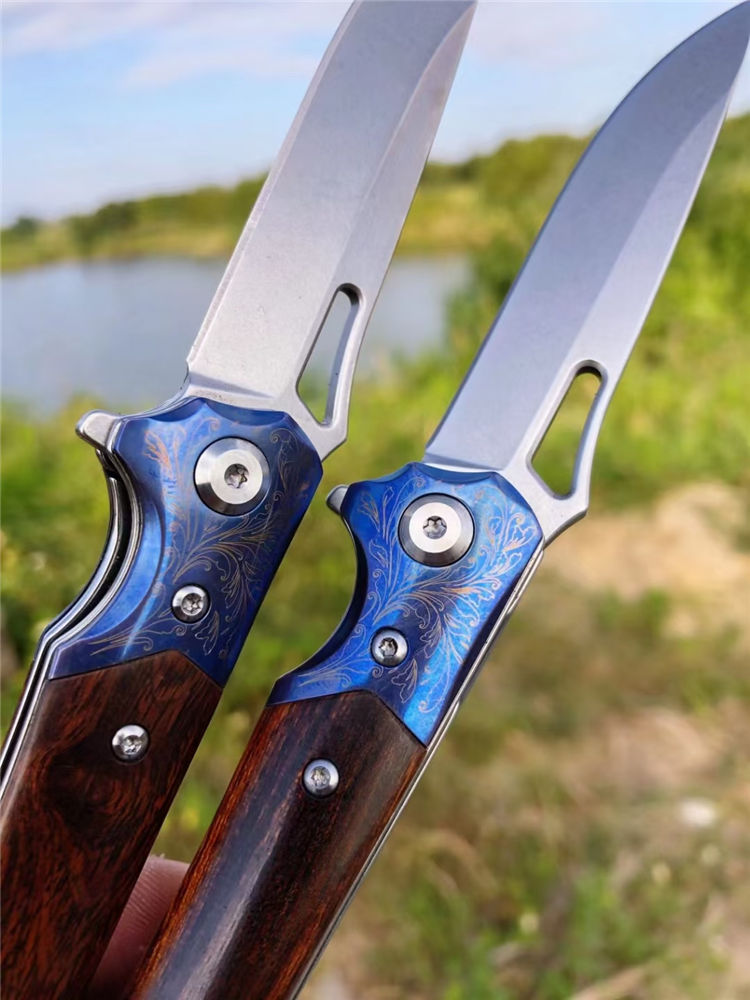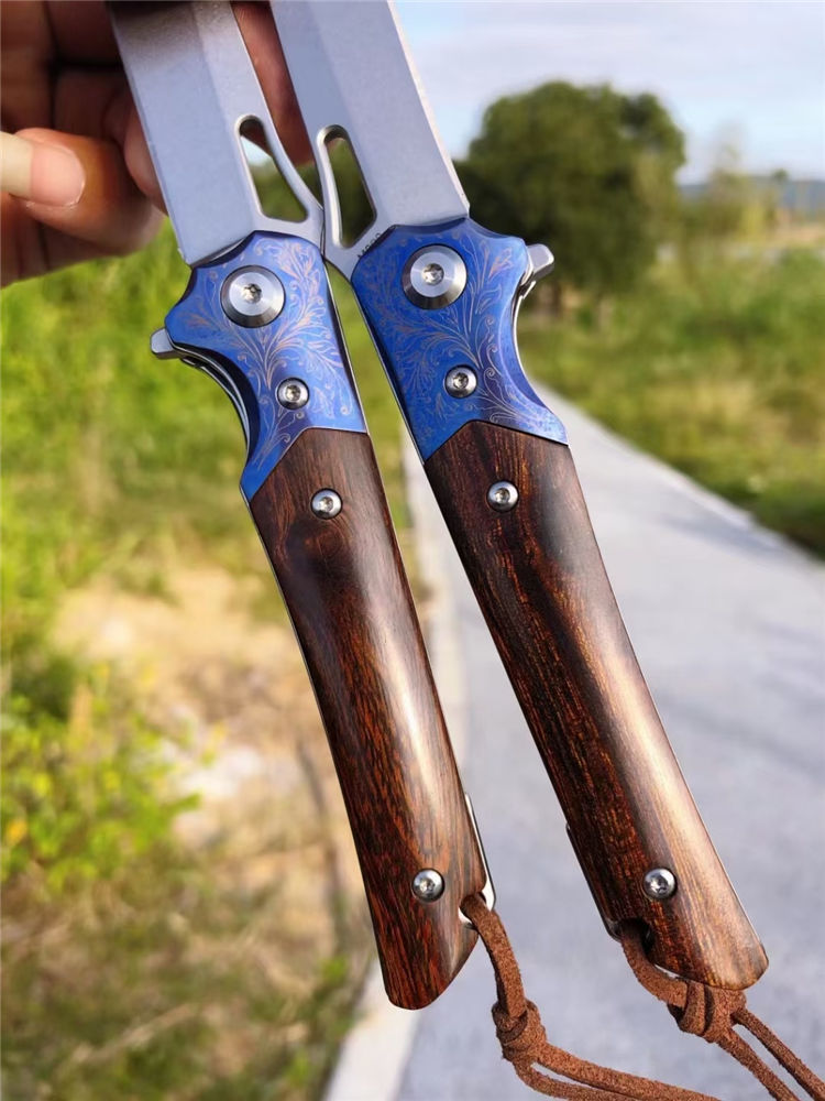 柄材:TC4钛合金烤蓝处理后雕花钢铁+进口美国沙漠铁木