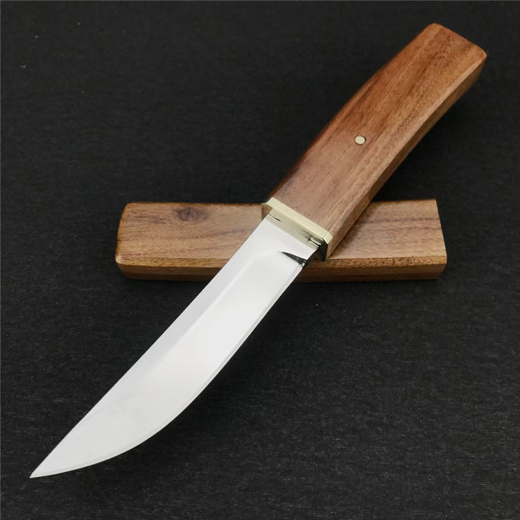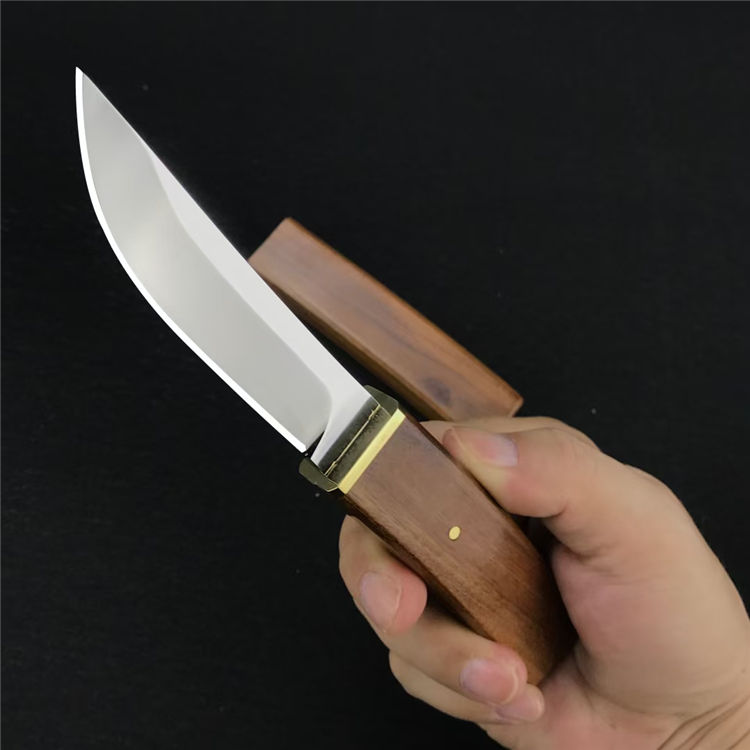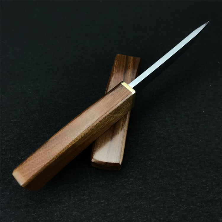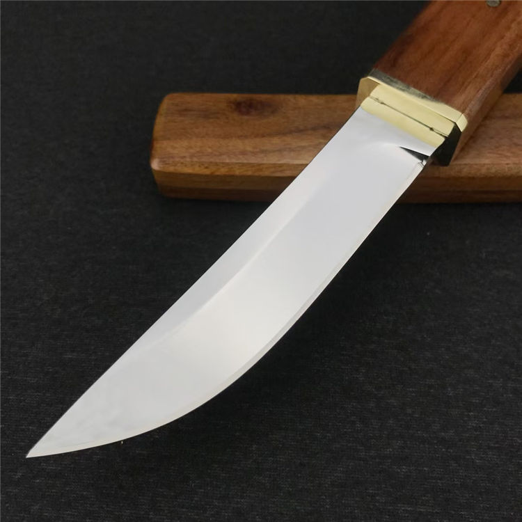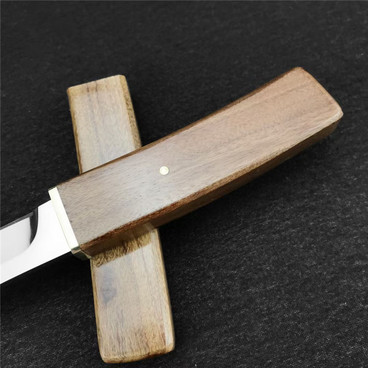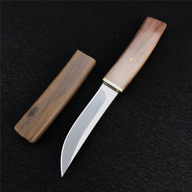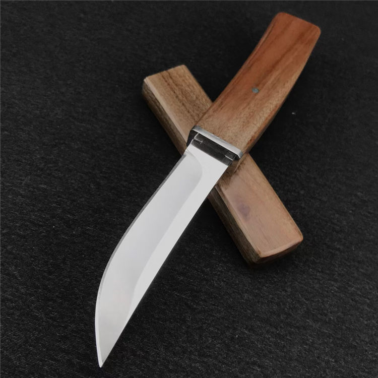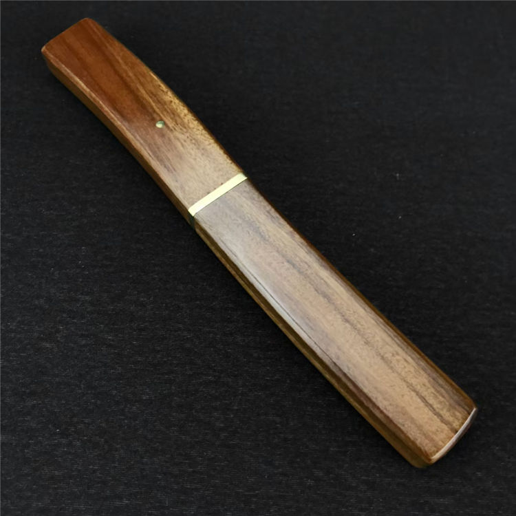 弧形小武士刀 全长:20.9CM 刃长:10.2CM 刃宽:1.8CM 刃厚:4.8MM 刃材:7Cr13Mov 柄长:10.7CM 手柄与鞘:红檀木 刀重量:148G