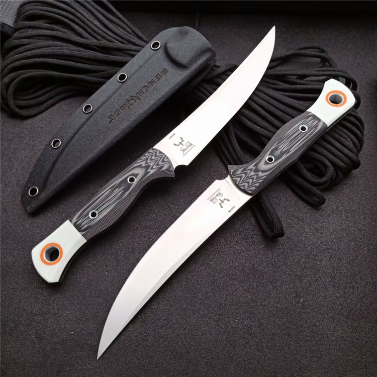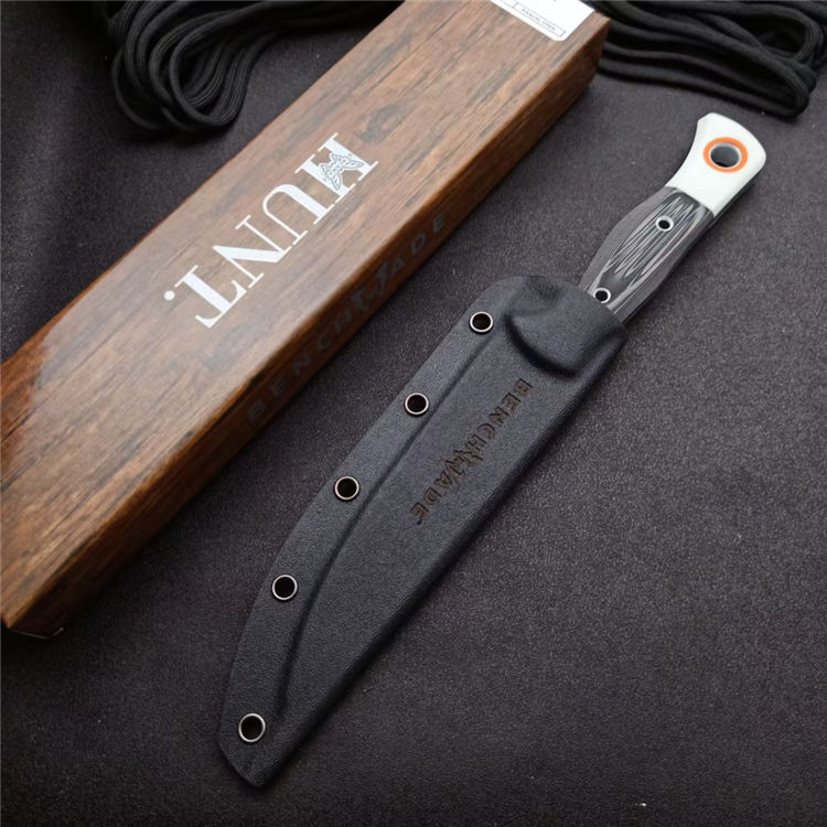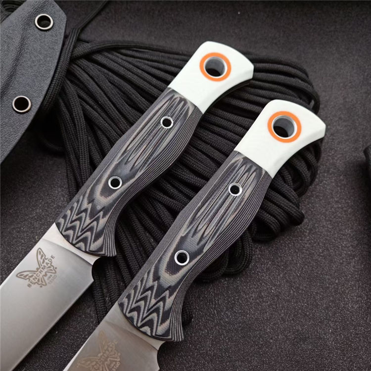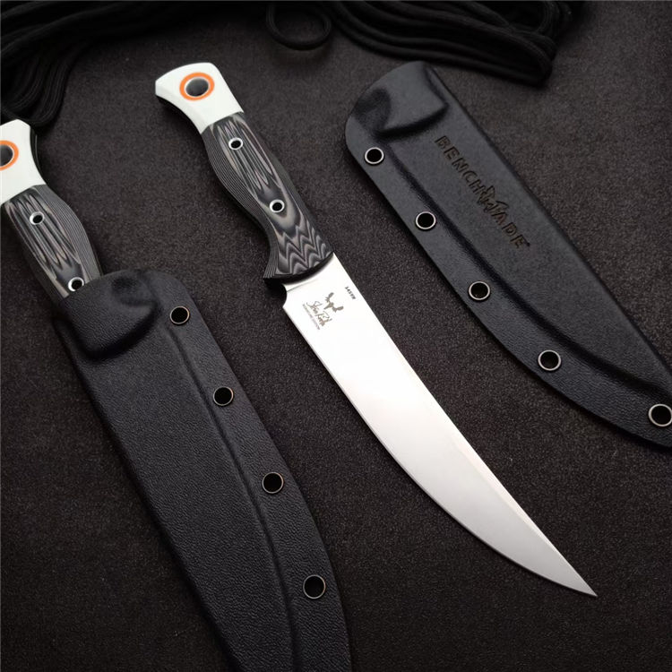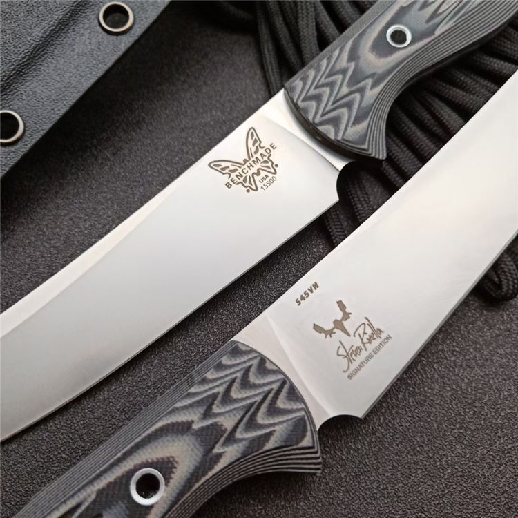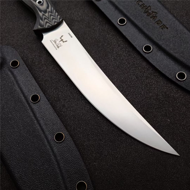 定制款蝴蝶15500肉食者直刀 全长:280mm 刃长:150mm 刃宽:30mm 柄长:125mm 刃厚:2.2mm 刃面:锻光 刃材:S45VN 粉末钢 净重:162g 重量:263g(含包装) 刀鞘:K鞘Kydex 硬度:真空淬油热处理 硬度:61-62HRC 柄材:双色定制G10+铝合金管+加防滑处理,握感更舒服,性能强悍 包装:原装彩盒