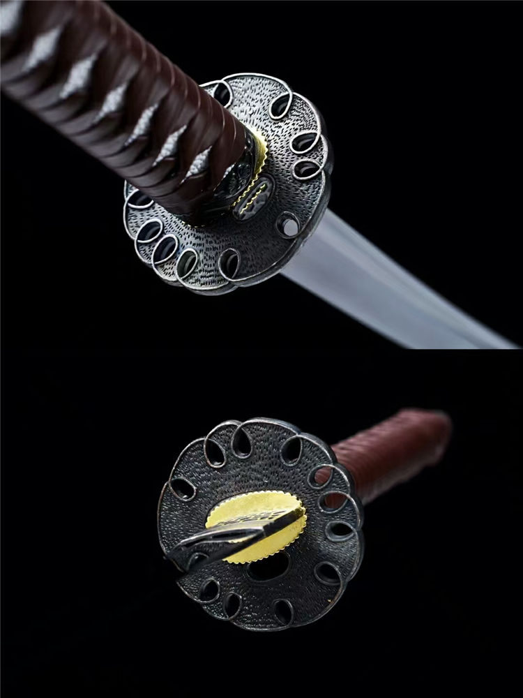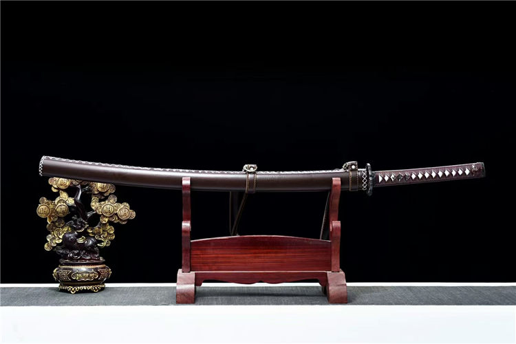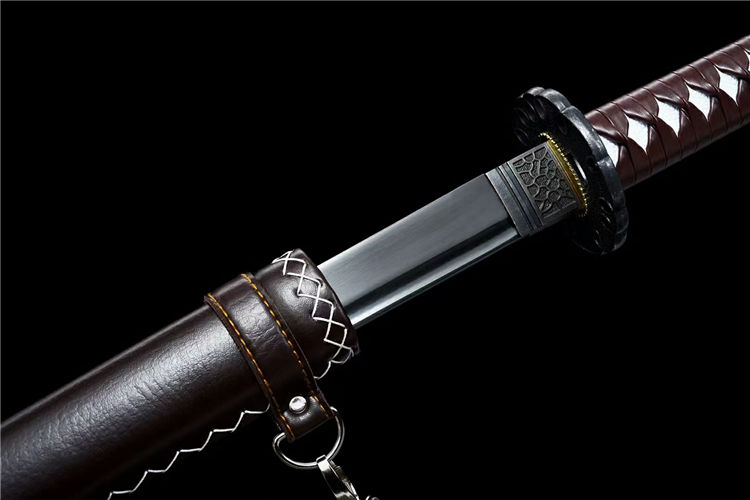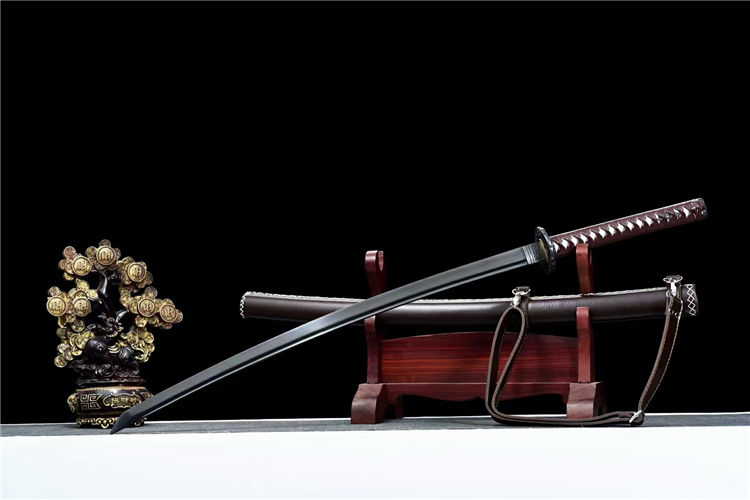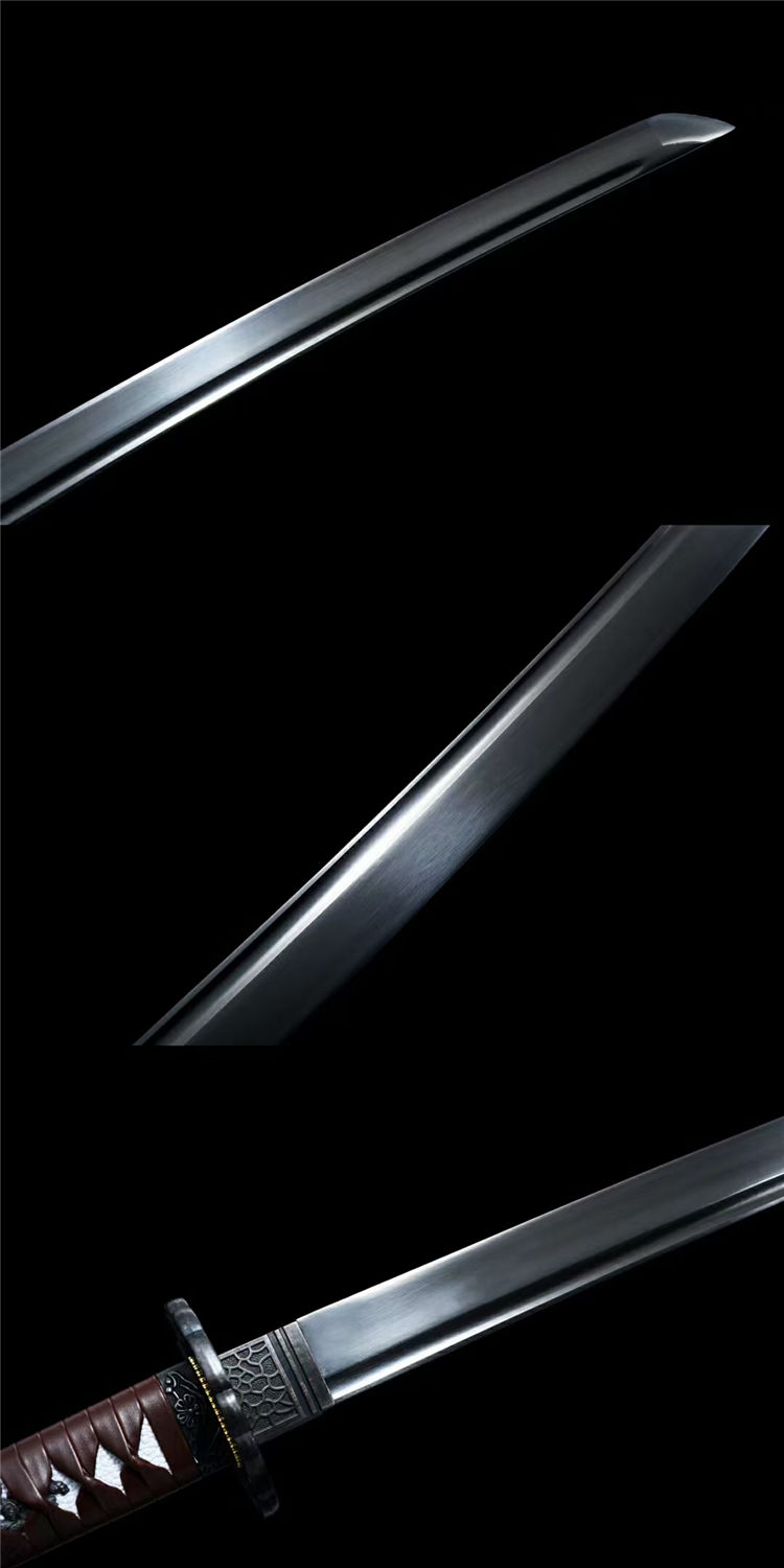行尸走肉幽灵之刃武士刀 全长:103cm 刃长:71cm 柄长:26.5cm 刃宽:3.2cm (最宽处) 刃厚:0.7cm 重量约:1.2KG 刃材:高碳钢手工锻造、手工研磨工艺,血槽设计、纯手工发黑工艺 装具:合金刀镡 鞘材:实木皮套刀鞘(可背式) 柄材:实木绕绳 适合:收藏 防身 情侣配送 乔迁送礼 武术健身 精美摆设 赠品:精美锦盒 工艺:刀身千锤百炼、经打胚、热锻、铲、锉、磨、热处理(淬火)回火、初修、精修、等龙泉古法数十道手工制作而成