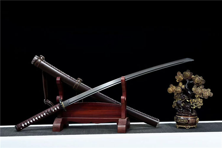 刃材:高碳钢手工锻造、手工研磨工艺,血槽设计、纯手工发黑工艺