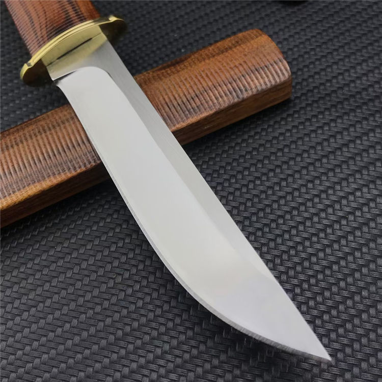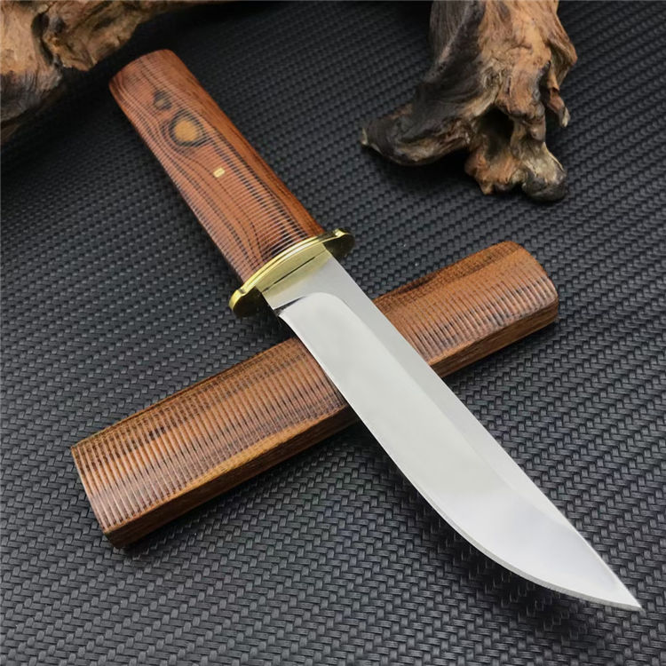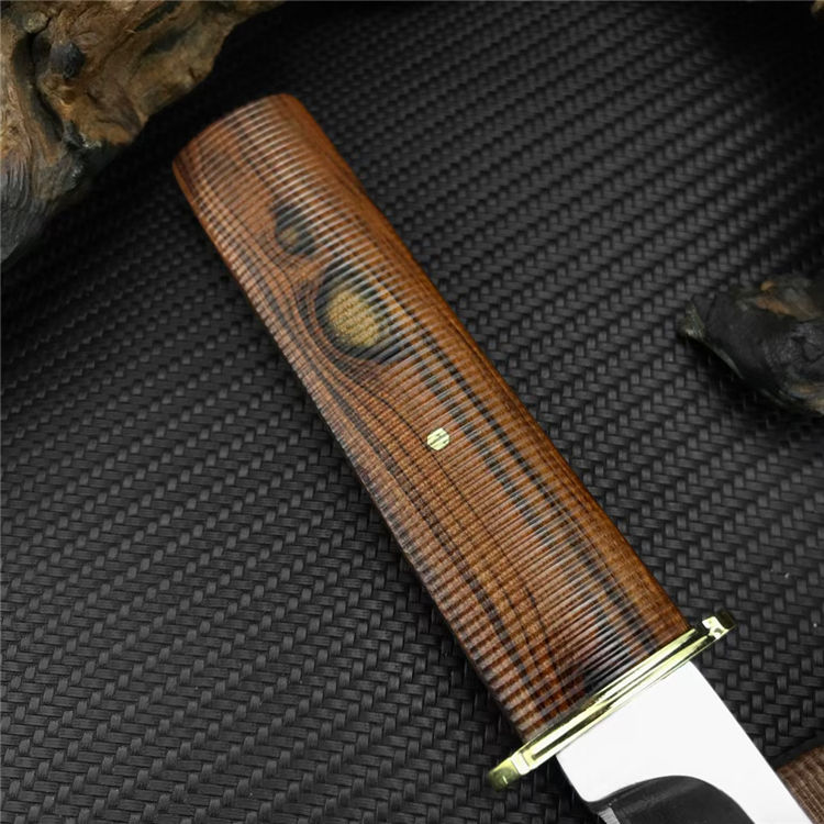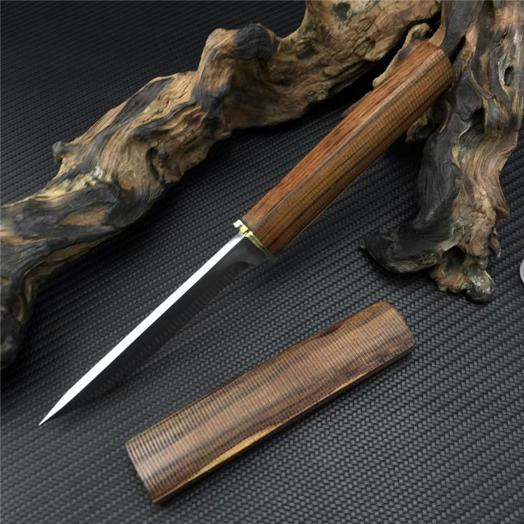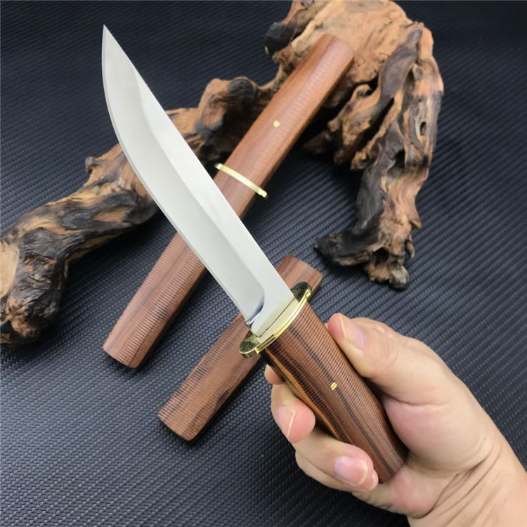 至尊武士直刀 全长:22.8CM 刃长:11.8CM 刃宽:2CM 刃厚:4MM 刃材:8Cr13Mov 柄长:11CM 手柄:酸枝木+黄铜护手 重量:161G 刀鞘:酸枝木