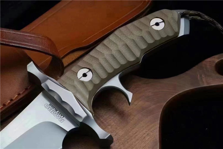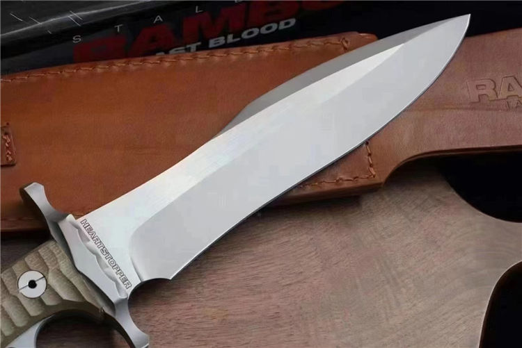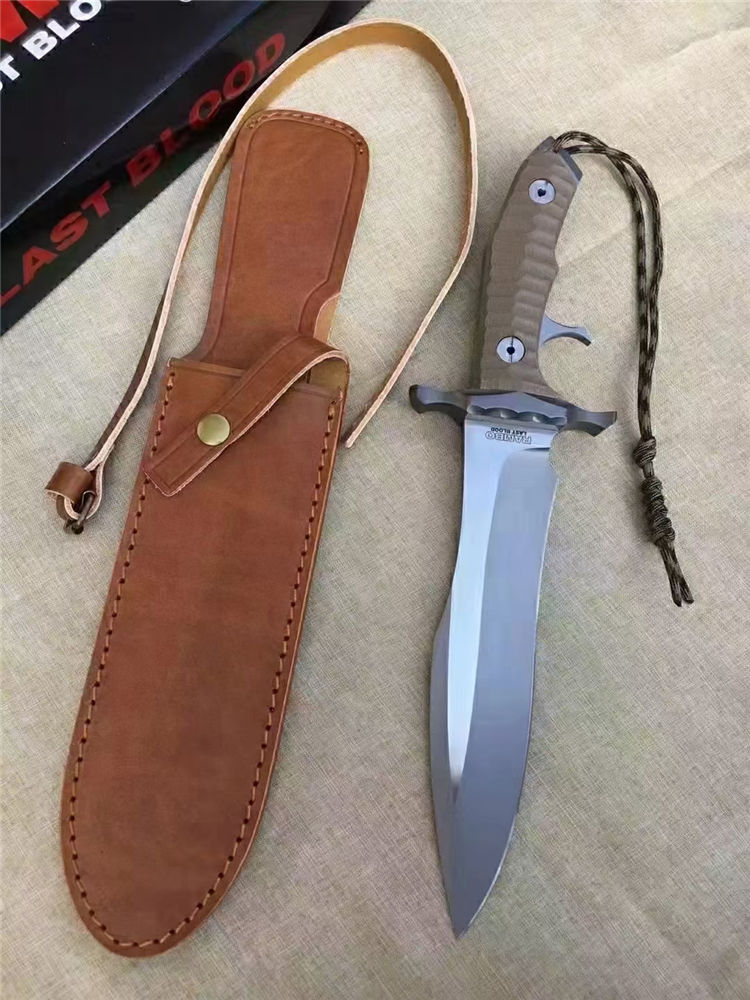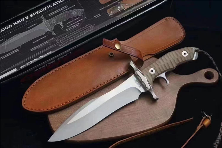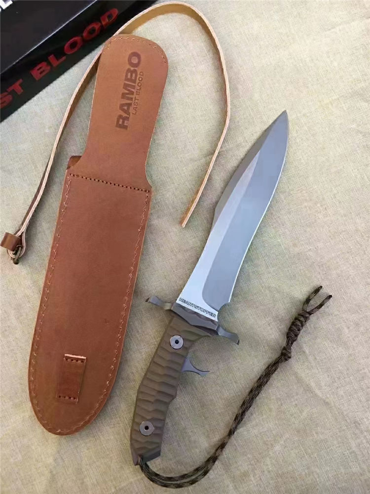 复刻版史泰龙MK9直刀 材质:A8 全长:383mm 厚度:5.8MM 刃长:228mm 柄长:155mm 刃宽:49mm 硬度:59(真空热处理)真空处理韧性非常好多次回火护手钛合金喷砂处理护 手宽:100mm 贴片:沙漠色g10,12.9级战术锣丝刃面数控磨,珠光石洗效果表面拉丝 重量:640g 一体龙骨,手柄是复杂结构,分段式镶堪工艺,手柄龙骨退火与外钢圈焊接,牢固,尾部可作打击锥
