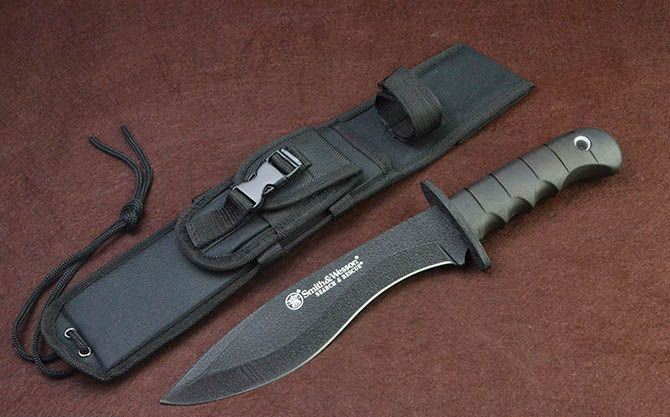 史密斯—7号弯刀 全长:35cm 刃长:20.5cm 刃宽:4.5cm 刃厚:0.58cm 刃材:440C 硬度:57HRC 表面:特氟龙 柄材:橡胶 柄长:13cm 结构:刀身贯穿刀柄,铜钉固定,非常牢固。 毛重:720克 附件:专用战术尼龙套 品质:OEM代工正品 产地:中外合资