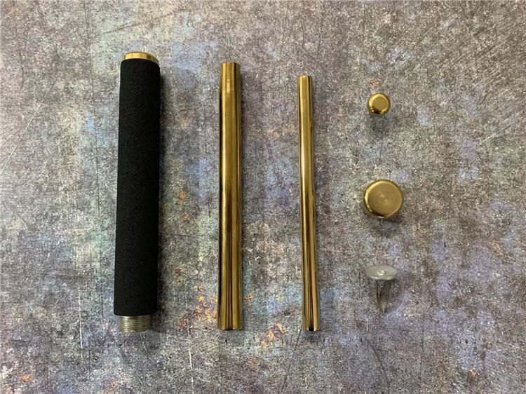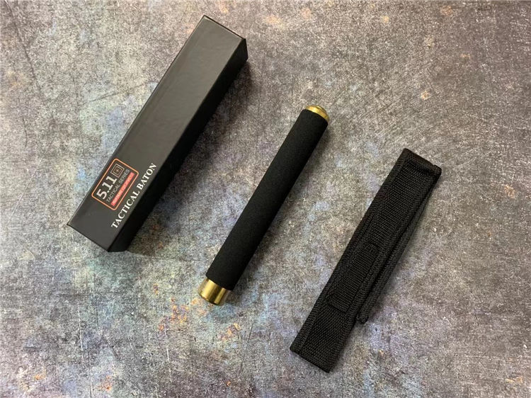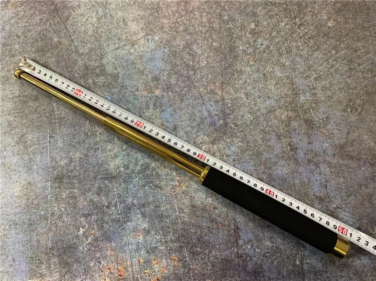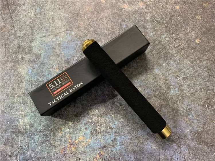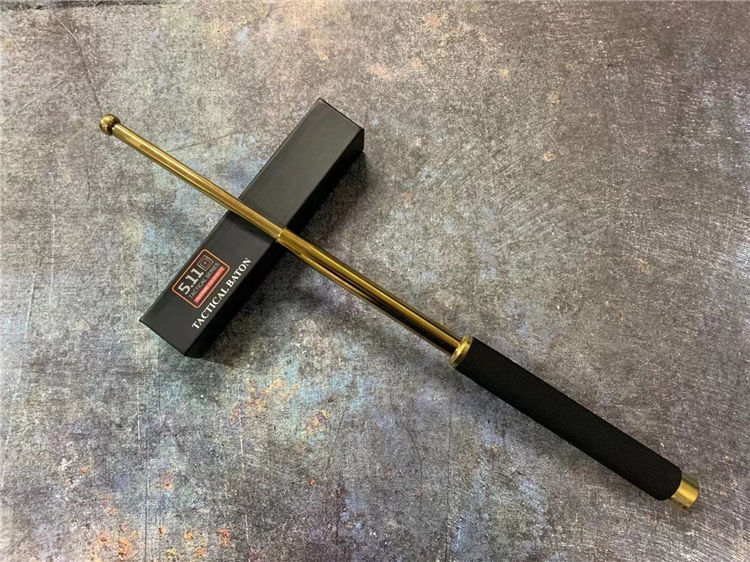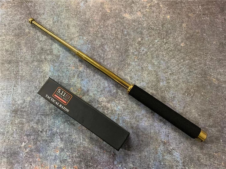 21寸金色511甩棍 海绵手柄手感舒适,甩出用力向外侧甩出卡声即为三节牢固卡住,收起棍头向下敲击直到收回甩出棍子,适用于训练安全健身防身格斗