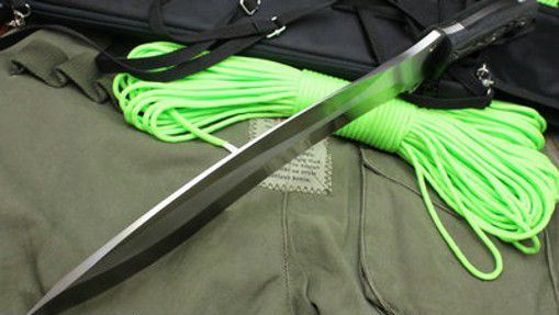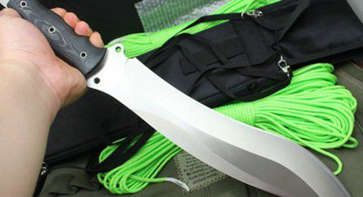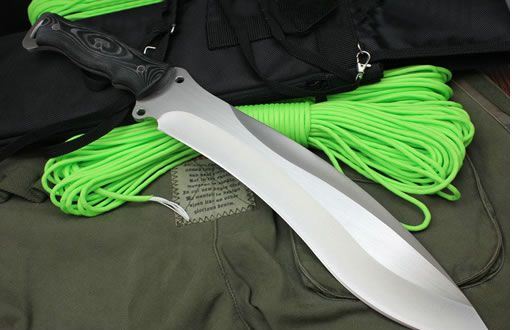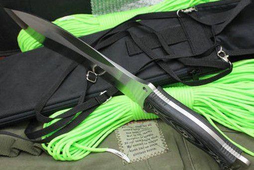 全 长:458mm 刃 长:320mm 刃 宽:60mm(最宽) 刃 厚:6.0mm 刃 材:440C 硬 度:59-60HRC{真空热处理) 表 面:钢本色(精细砂光,拉丝处理) 柄 材:黑白米卡塔,CNC 3D成型 刀 鞘:黑色尼龙背包式鞘(内衬硬胶鞘) 净 重: 1000克