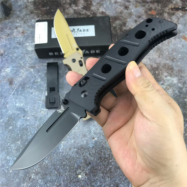 蝴蝶275折刀 全长:22.2CM 刃长:9.7CM 刃宽:3CM 刃厚:2.5MM 刃材:9Cr18Mov 硬度:60 柄长:12.5CM 柄材:G10 重量:218G