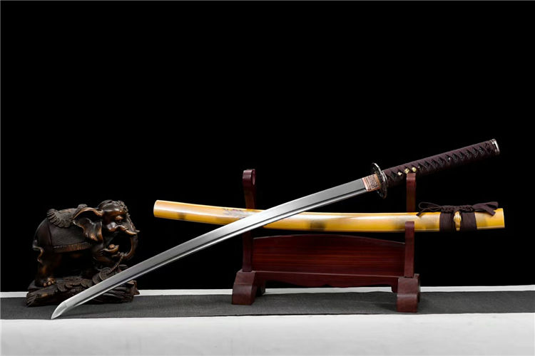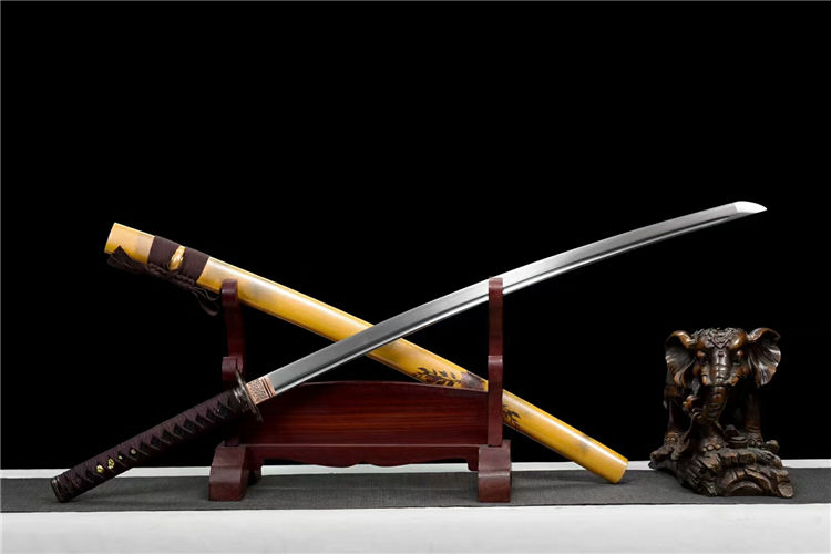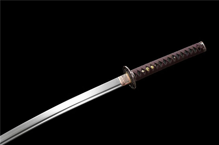 战梅武士刀 全长:103cm 刃长:72cm 柄长:26cm 刃宽:3.2cm 刃厚:0.7cm 重量:1.1KG 刃材:高碳钢一体锻打 装具:合金 鞘材:实木油漆 柄材:实木绕绳 下续:金皮下续 适合:收藏 防身 情侣配送 乔迁送礼 武术健身 精美摆设 赠品:高端锦盒、护理油 性能:锋利、劈竹、削A4 无压力、一体老虎尾锻造 工艺:刀身千锤百炼、经打胚、热锻、铲、锉、磨、热处理(淬火)回火、初修、精修、等龙泉古法数十道手工制作而成