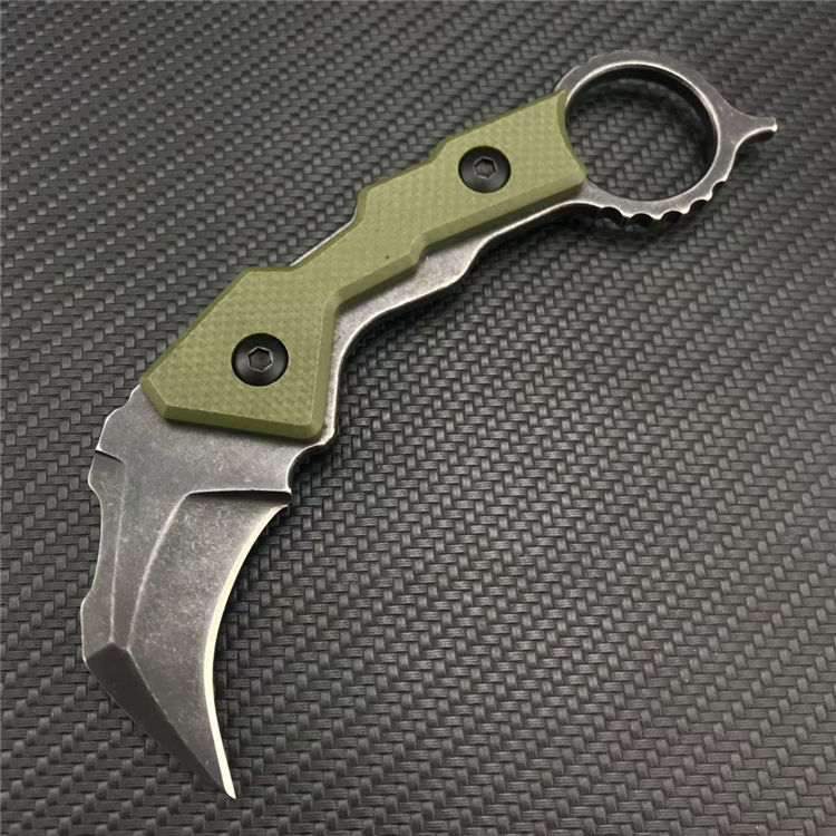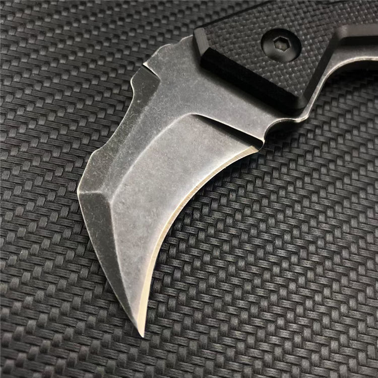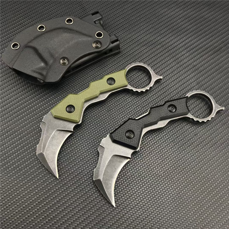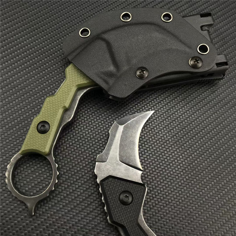 小萌牛爪刀 全长:17.5CM 刃长:6CM 刃宽:3.3CM 刃厚:3.5MM 刃材:7Cr13Mov 柄长:11.5CM 柄材:G10 重量:131G 刀鞘:Kydex sheath