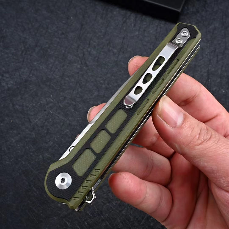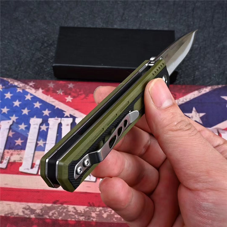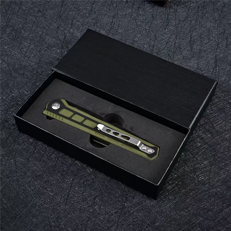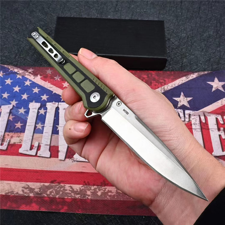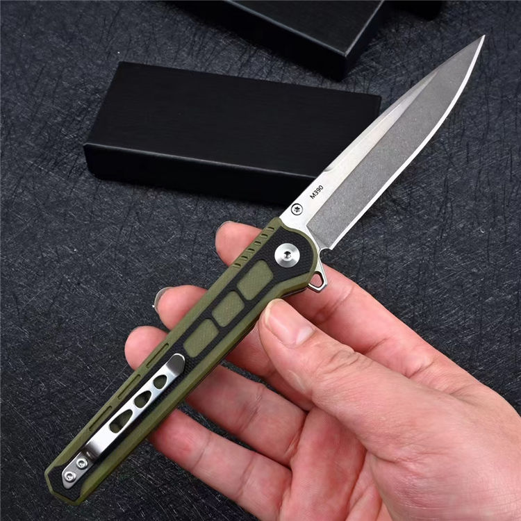M390浩克折刀 全长:21.1cm 刃长:9cm 柄长:11.7cm 刃厚:0.28cm 刃宽:2.1cm 刃材:m390 柄材:双色G10 硬度:60-61HRC 表面处理:石洗 净重:107.1g 重量:153g(含包装) 包装:黑色礼品盒
