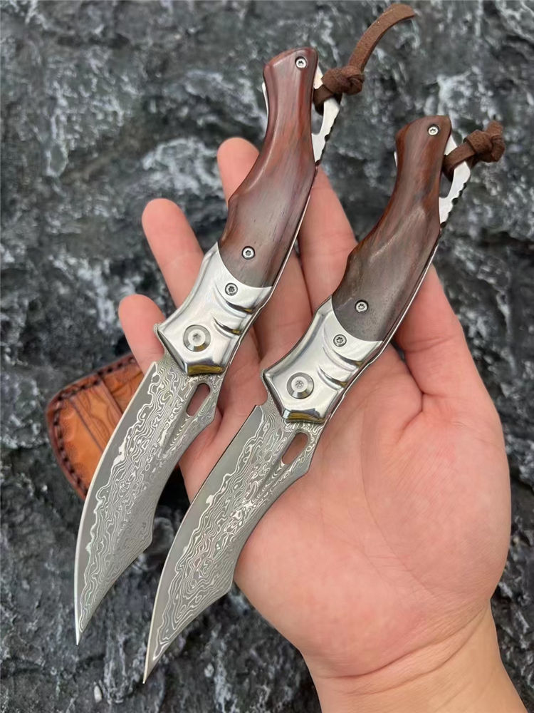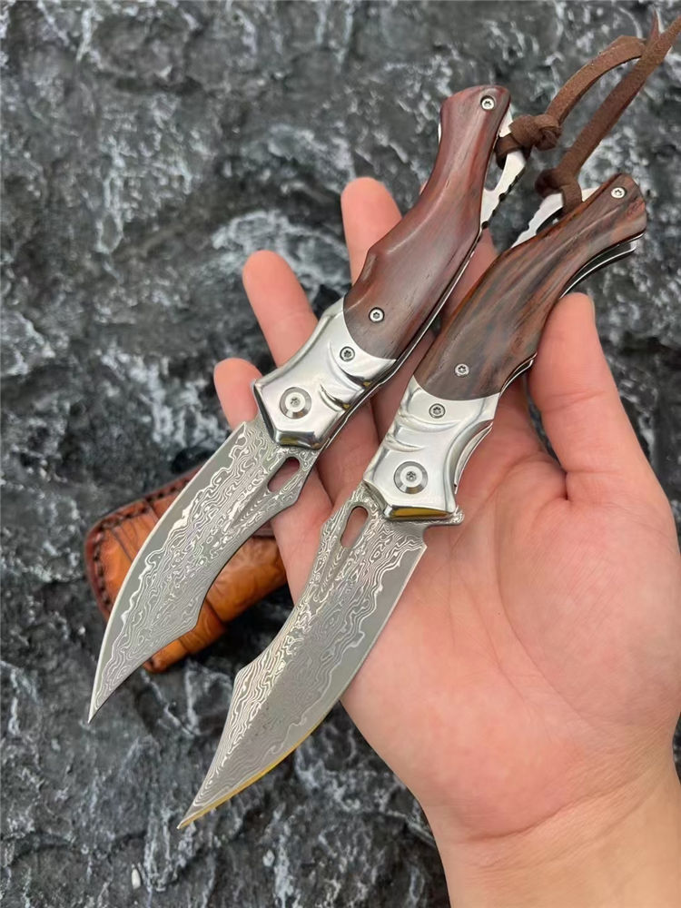 大马士革箭鲨轴承快开折刀