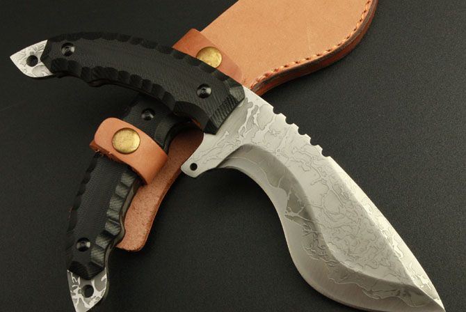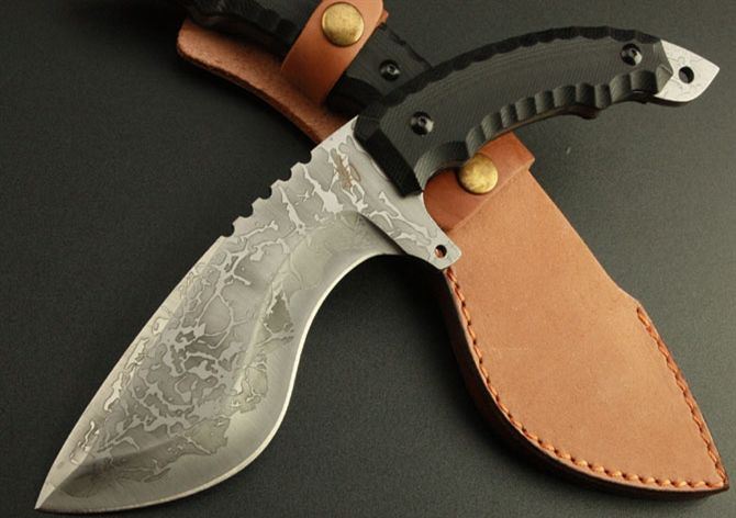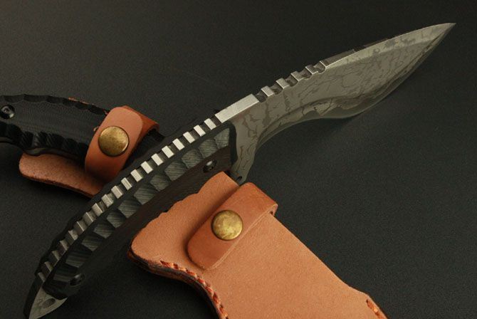 全长:27.5cm 刃长:15cm 柄长:13cm 刃厚:5.8mm 刃宽:6cm 刃材:5Cr13 柄材:黑G10 硬度:57HRC 毛重:580克(含包装物) 表面处理:电脑加工