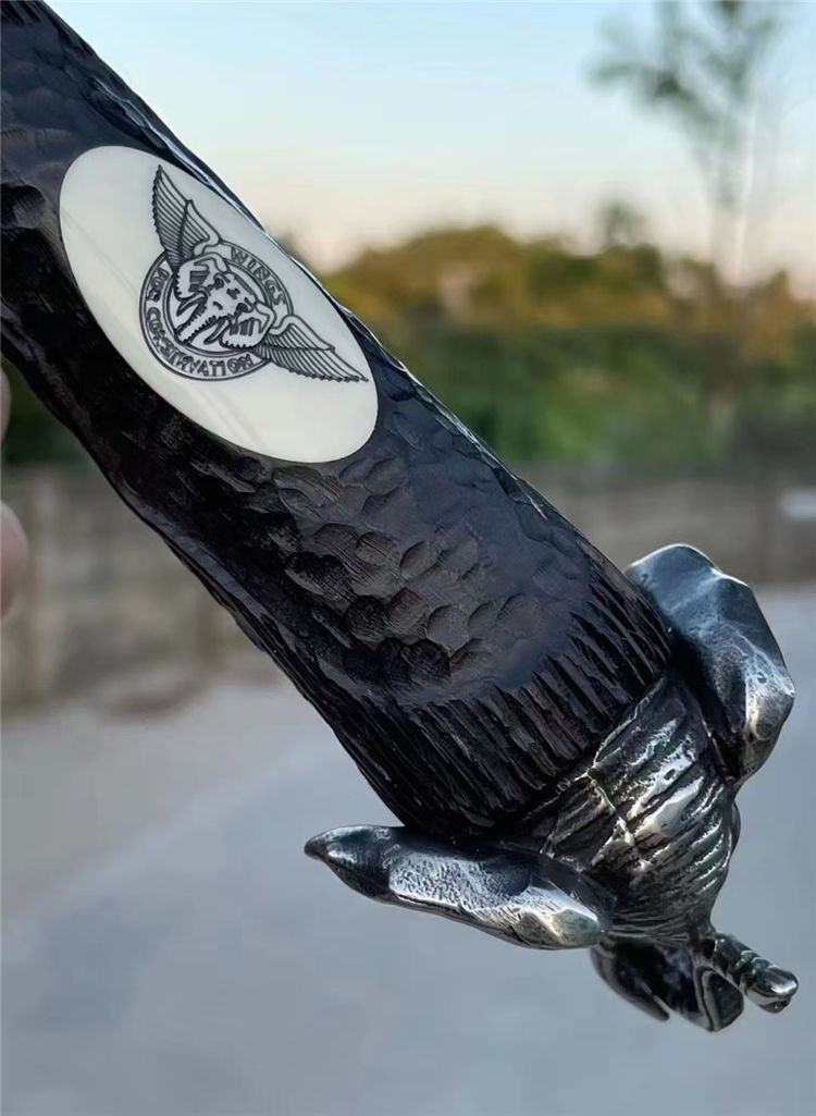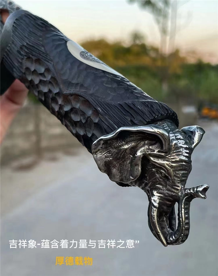 手柄:黑檀木手工搓花刮花,大象不锈钢形体+复古旧效果