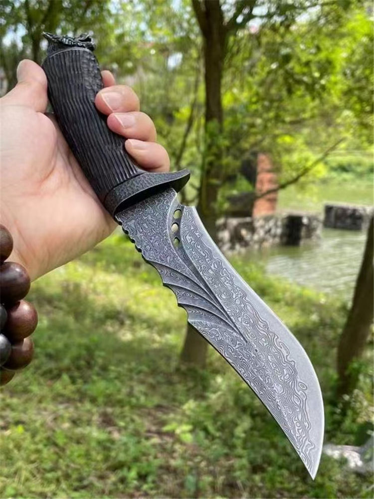 大马士革苍狼黑檀直刀