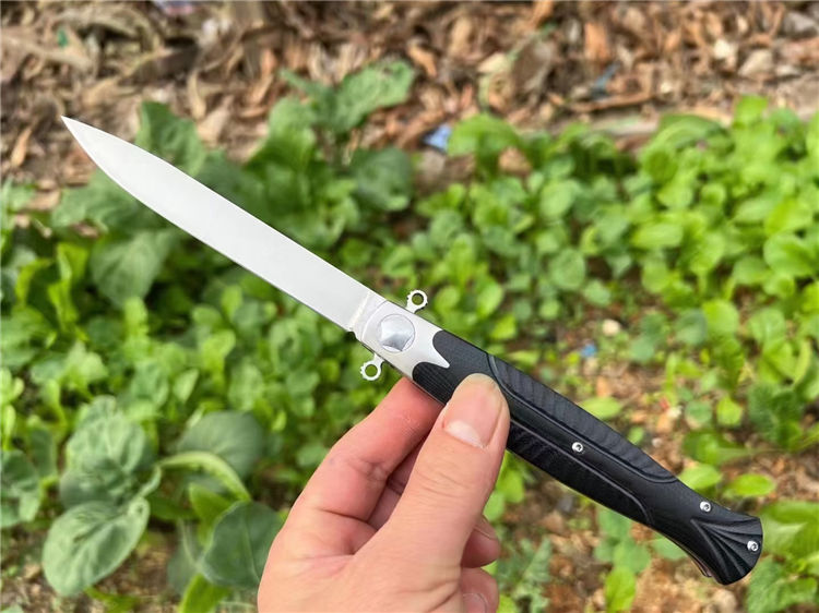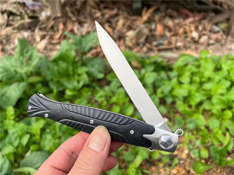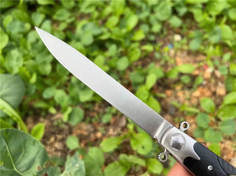 俄罗斯战刺2折刀 总长:260mm 刃长:110mm 柄长:145mm 刃厚:4.0mm 刃宽:15mm 净重:177.2 g(单刀) 钢材:D2 柄材:钢+米卡答 硬度:60HRC 表面处理:沙光 包装盒子外贸尾单厚滚珠轴承