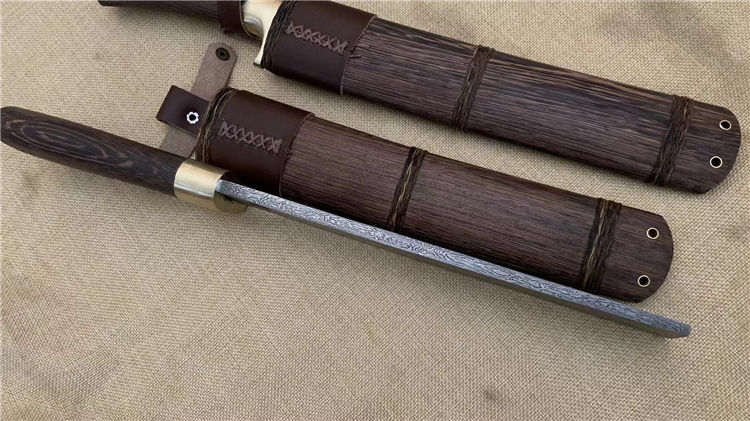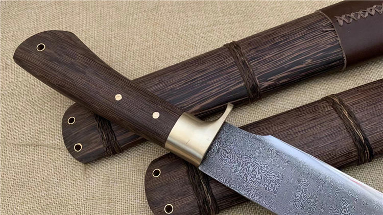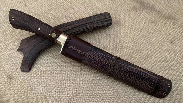 刀壳:进口鸡翅木,手工综丝牛皮扣,刀体美观大方