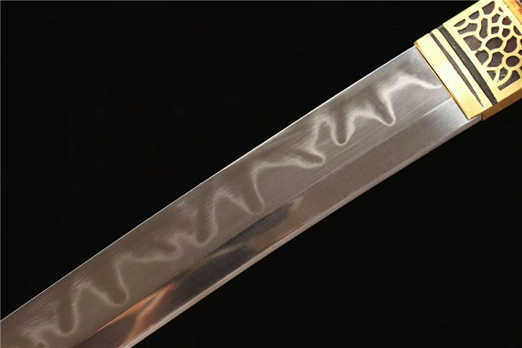 工艺:刃身手工锻造,经过打坯、热煅、铲、锉、研磨、粹火,回火、手工研磨等龙泉刀剑古法制造工序制作而成
